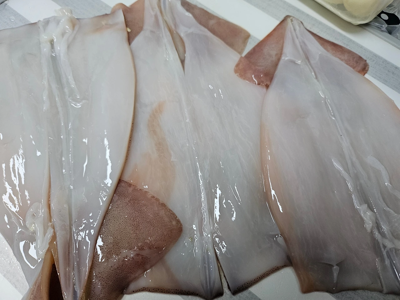 오징어4마리로 두가지 반찬 맹글어보입시더~~♡ 낚시오징어라 크기는 손바닥보다 조금 작은 사이즈에요.
