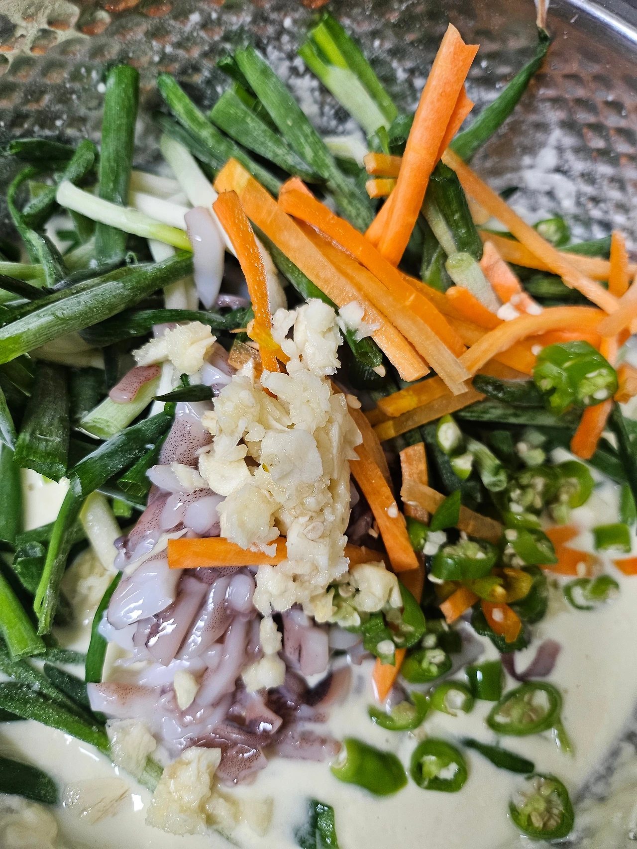 2.해물파전에는 다진마늘 넣어봐요 비린맛 날아가서 식어도 맛있어요
