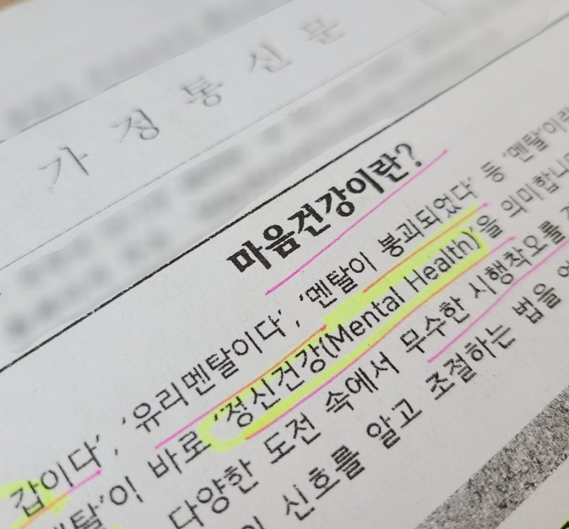 얼마 전 학교에서 가정통신문을 보내왔는데, 그 주제 역시 '마음건강'에 관한 것!