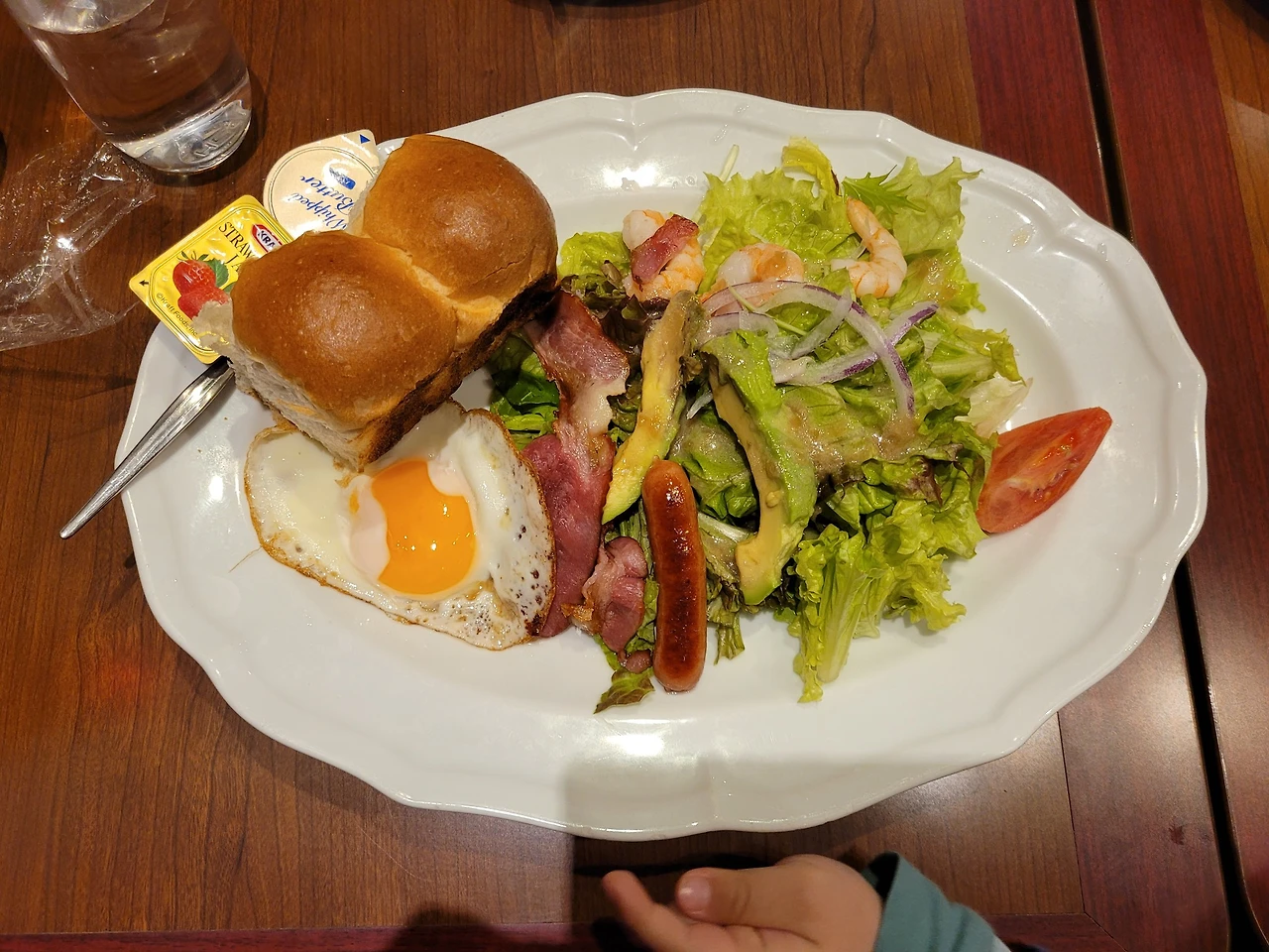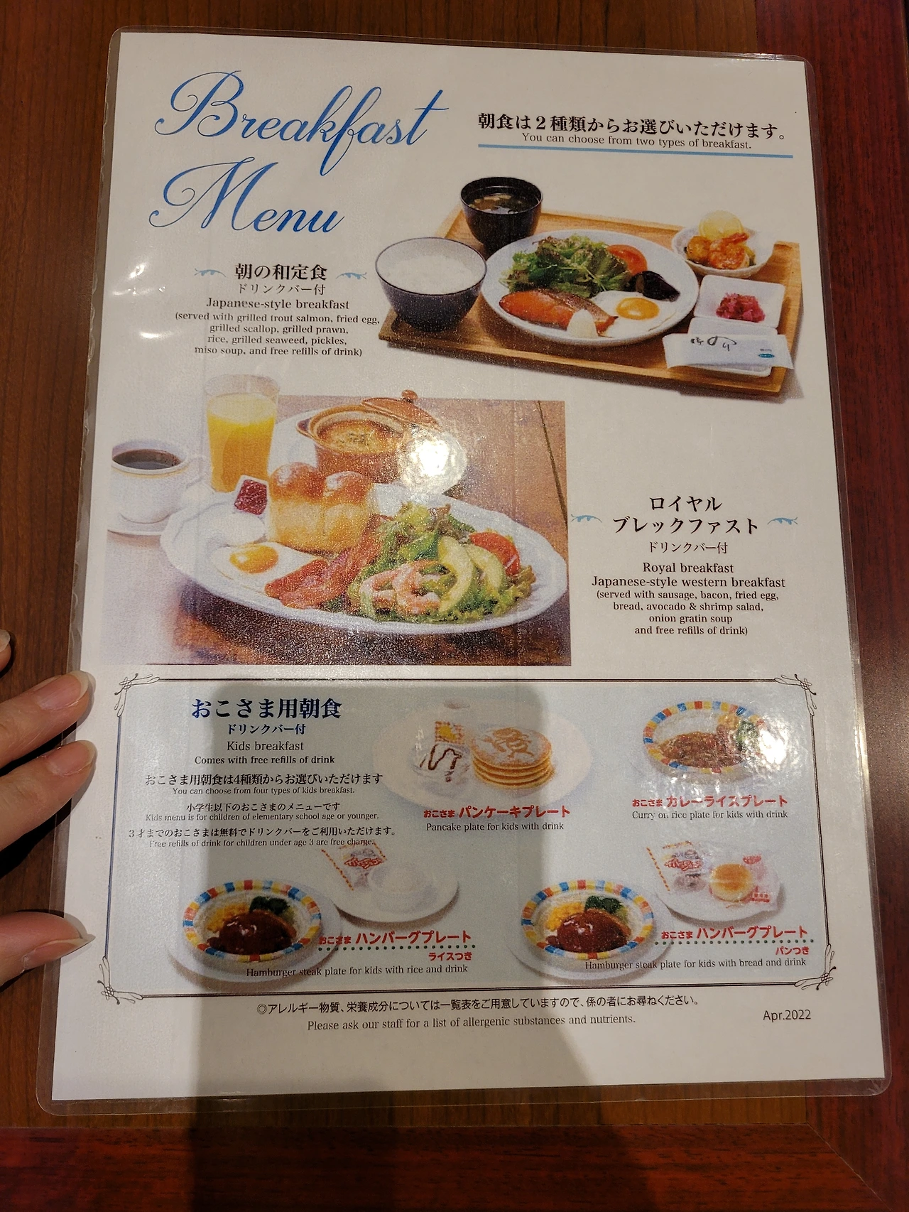 호텔조식은 선택사항인데 조식당은 일본의 유명 패밀리레스트로랑 체인인 #로열호스트 가 대행했다. 그래서 호텔식당인데도 불구하고 항상 손님들로 가득 차 있었다. 조식은 딱 2가지 메뉴만 제공했는데 12박 동안 매일 같은 걸 먹느라 질릴 만도 했지만 신선하고, 맛이 딱 적당해서 나쁘지 않았다.