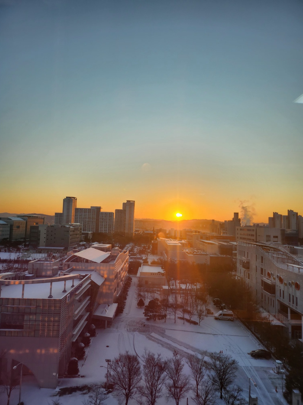 혹시라도 출근길이 정체되어 늦어질까 봐 서둘러 출발했어요. 아침의 공기를 가르며 아무도 밟지 않은 주차장에 일찌감치 차를 세워 놓고 주변을 둘러보니 세상이 참으로 고요하네요. 하얀 눈을 잔뜩 품은 하늘을 따라 아침해는 주홍빛의 여운을 살며시 띄우며 일어날 준비를 하고 있어요. 나의 걸음을 따라 찍히는 발자국을 돌아보며 오랜만에 낭만을 즐겨요. 날씨는 춥지만 마음은 소복하게 내린 눈만큼 고요하고 평온해져요.