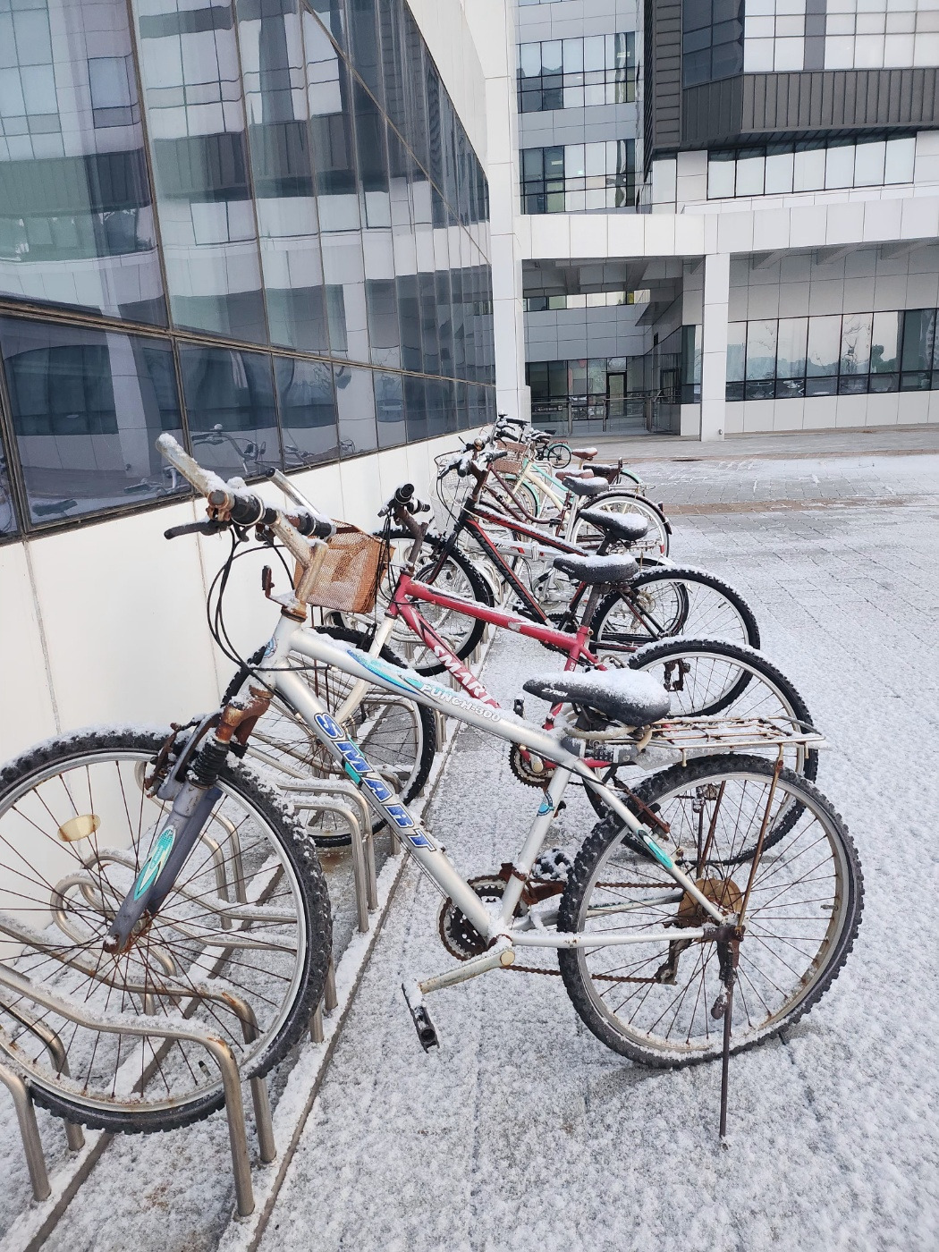 직장 건물로 들어가기 전에 자전거 거치대를 지나야 해요. 오늘따라 쌓인 눈을 따라 세워진 자전거들이 한눈에 들어와요. 이리저리 흠집이 나고 녹이 슬고 바퀴는 이미 공기가 빠져 있어 눌린 채로 푸석거려요. 누군가의 의자가 되었을 안장 위로 하얀 눈이 소복이 쌓여 있는 것을 보니 오히려 쓸쓸해졌어요. 눈 위를 '뽀드득' 살며시 걸으며 느낀 평온했던 기분은 자전거 거치대의 바퀴를 따라 돌고 돈 인생을 본 순간 그만 숙연해져요.