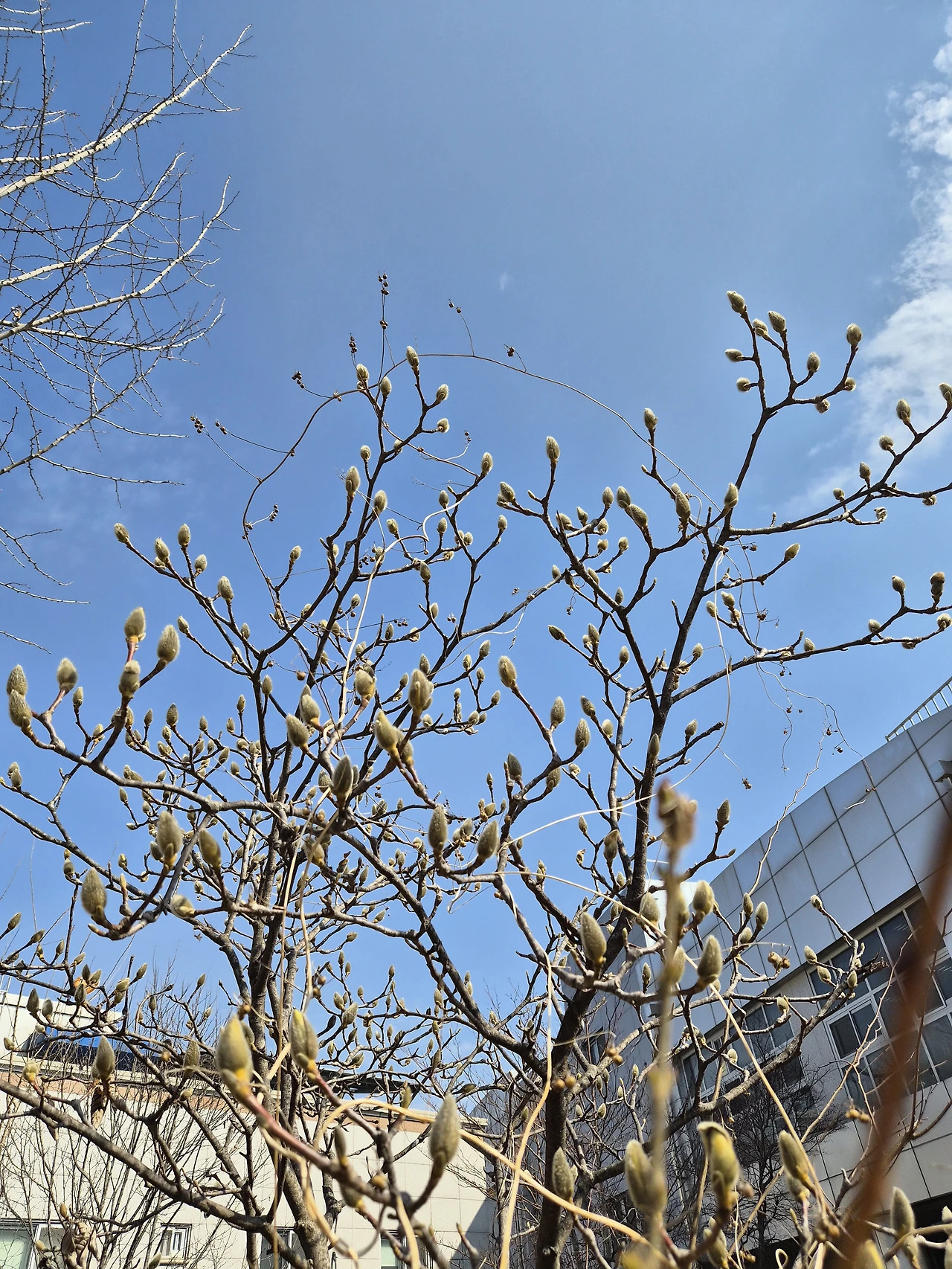 땅으로부터 올려진 겨울의 기운이 봄과 만나 나무도 서서히 깨어난다. 꽃잎을 오므린 꽃순이 얼마나 기특한지 모른다. 긴 겨울을 품었기에 소중한 마음, 결마다 매만져진 자리에 용케 돋아나는 봄이다. 그래서 기특한 마음이 드는 것이다. 올해도 나는 기특한 봄을 이렇게 또 맞이하는구나!