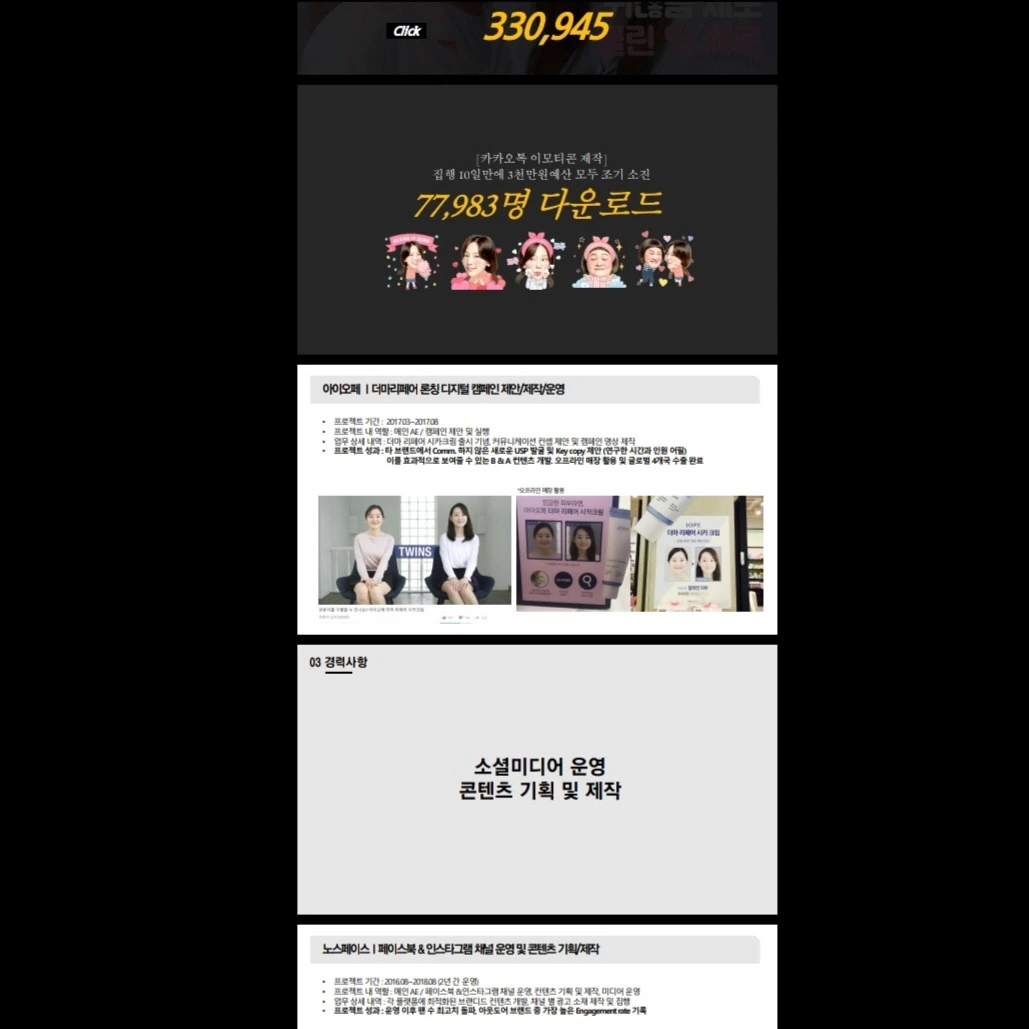 당장 눈 앞에 쌓여있는 보고서 만들기, 아이디어 스토리보드 짜기보다 더 중요한 것은 내가 열심히 일할 수 있게 ‘동기부여’ 해준 것이 무엇인지 찾는 것이었다. 성공적으로 했다거나, 상을 받았거나, 동료들에게 인정받았던 그런 것 말고 비록 실패했을지언정, 주목받지 못했을지언정 정말로 내가 좋아하고 재밌어했던 것이 무엇인지 말이다. 그것이 무엇인지 찾기 위해 지난 5년 동안 내가 했던 프로젝트들을 하나씩 정리하여 포트폴리오를 만들었다.