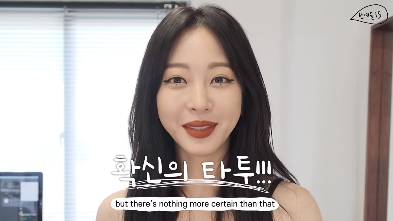 그녀는 12개의 타투를 가지고 있는데, 타투 하나하나에 그녀가 그녀의 인생을 대하는 신념과 태도가 담겨 있다. 하고 나서 후회하진 않았을까? 하는 생각이 들었는데, 타투를 새길 때 느꼈던 감정과 생각들 모두 자신의 삶을 구성하는 요소이고, 지금의 한예슬을 있게 해 준 원동력이라고 이야기하는 그녀를 보면서, 얼마나 스스로를 사랑하고 아끼는지 느껴졌다.
