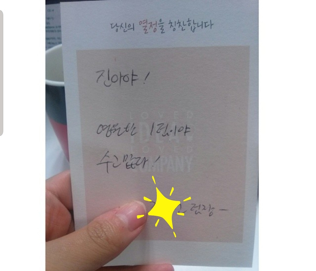 우리 회사에는 매달 칭찬하고 싶은 동료에게 메시지 카드를 전하는 문화가 있는데, 어김없이 많은 업무로 정신없이 일하고 있던 나에게 팀장님이 카드를 건넸다. 항상 "오늘은 괜찮니? 고생이 많다" 라며 위로해주셨기 때문에 카드에도 그런 메시지가 적혀있겠지? 싶었는데 카드에 적힌 문구를 보자마자 울컥 눈물이 날 뻔했다.