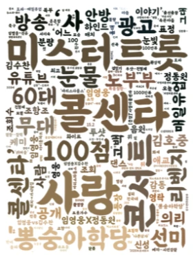 마침 부모님이 거실에서 트로트 방송을 보시길래 요즘 유명한 트로트 가수 임영웅을 검색해보았다. 높은 인기에 부응해 그가 출연하는 프로그램 위주의 연관어가 등장했다. 많은 사랑을 받는 그이기에, 시청자 입장에서는 그가 어떤 프로에 나와 무슨 노래를 불렀는지가 가장 유용한 정보일 것이다. 데이터는 이 점을 말해준다.
