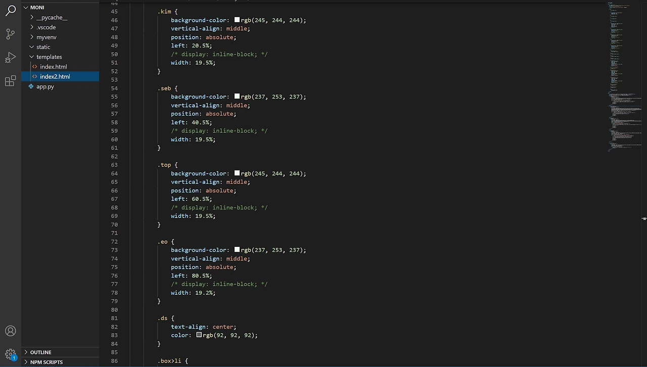 또 한 가지 발견한 점이 있다. jinja2 언어와 konlpy 모듈이 서로 호환이 잘 안되는 것 같다. 이 페이지에 평판 분석기를 추가해서 인터뷰이별 현재 이슈도 한눈에 보도록 구성하려고 했는데, 파이썬 파일에서 konlpy를 불러와 jinja2로 html파일에 넘겨주자 리스트값이 모두 사라져버렸다. 값 자체가 사라진 것인지, 단순히 보이지 않는 것인지 사실 아직도 모르겠다. 더 시간을 끌 수 없어 포기했다.