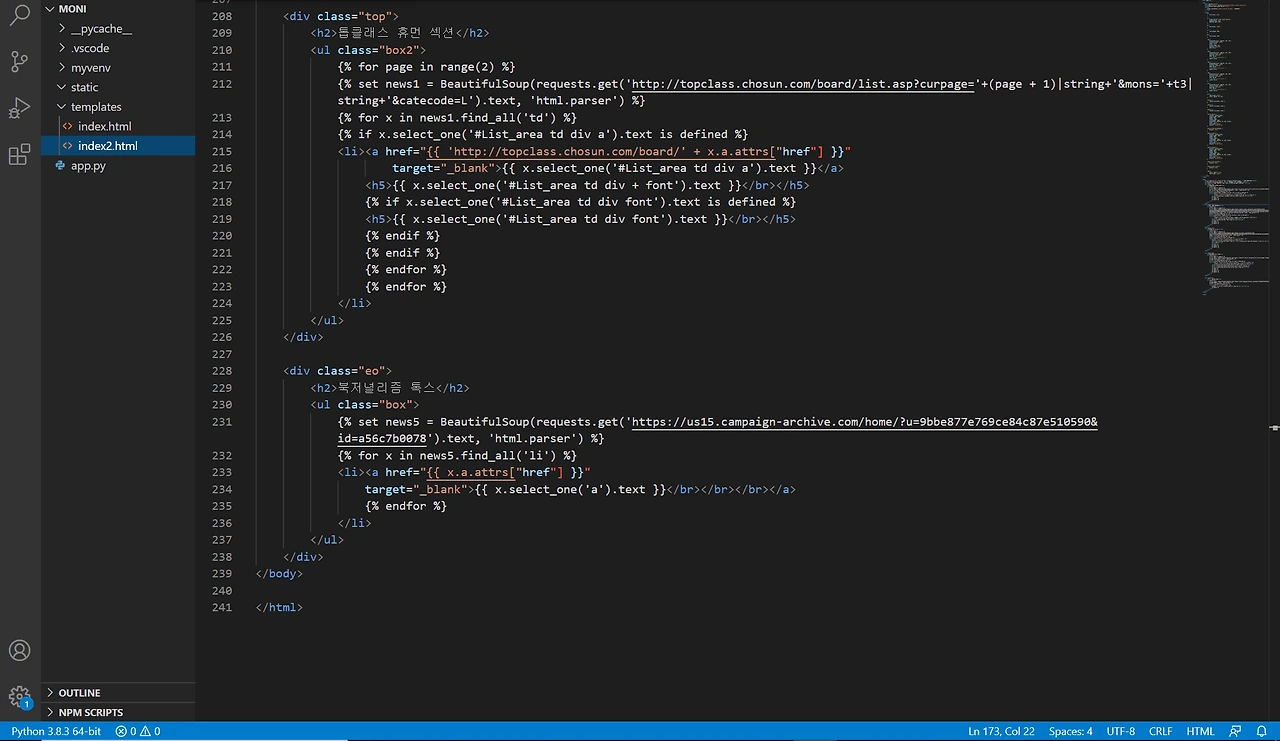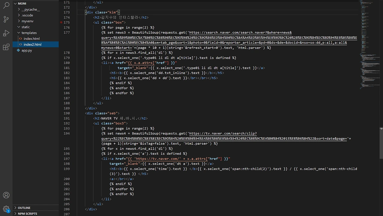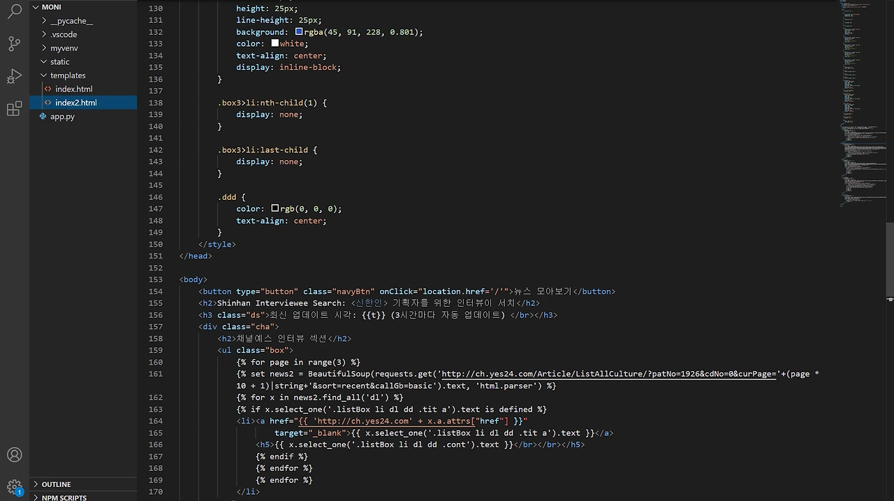 여기서부터 htiml 파일인 index2.html (index.html은 뉴스 모니터링 페이지다.)
