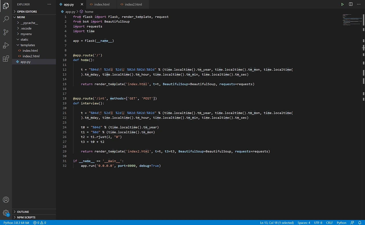 먼저 파이썬 파일인 app.py