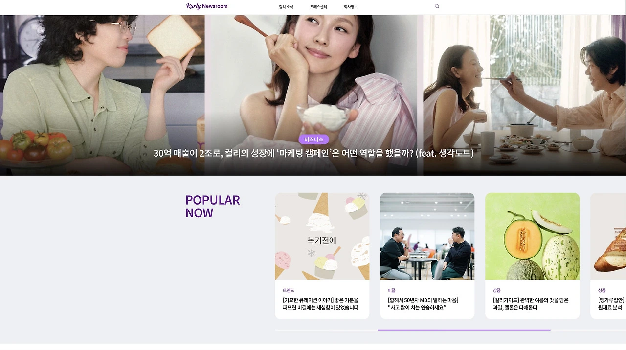 나는 하드웨어 측면에서는 '보편성'을, 소프트웨어 측면의 분석에서는 '차별성'에 대한 힌트를 얻어 벤치마킹의 결론을 도출했다. 이게 무슨 말인가 하면, 뉴스룸 같은 기업 채널은 '목적성' 유입이 많기 때문에 들어왔을 때 어느 정도 예상 가능한 포맷을 보여주는 것이 필요하다 생각했다. 그래서 타사 뉴스룸에서 공통적으로 적용하고 있는 뉴스룸의 레이아웃과 기능들은 우리 뉴스룸에도 대부분 반영했다. 뉴스룸 사용자들이 이 정도 기능은 당연 있을 것이라 기대하고 들어왔는데, 그 기능들이 빠져있을 경우 좋지 않은 경험을 줄 수 있기 때문이다. 그렇다고 너무 보편적인 스타일로만 제작하면 우리 브랜드만의 개성이 안 보일 수 있기 때문에 뉴스룸의 목적, 지향점, 타깃을 바탕으로 변주를 줄 부분을 추가적으로 결정했다.