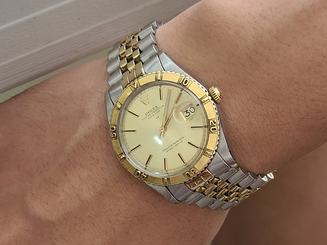 1969's ROLEX OYSTER PERPETUAL DATEJUST TURN-O-GRAPH "THUNDERBIRD" Ref.1625"(YELLOW GOLD)