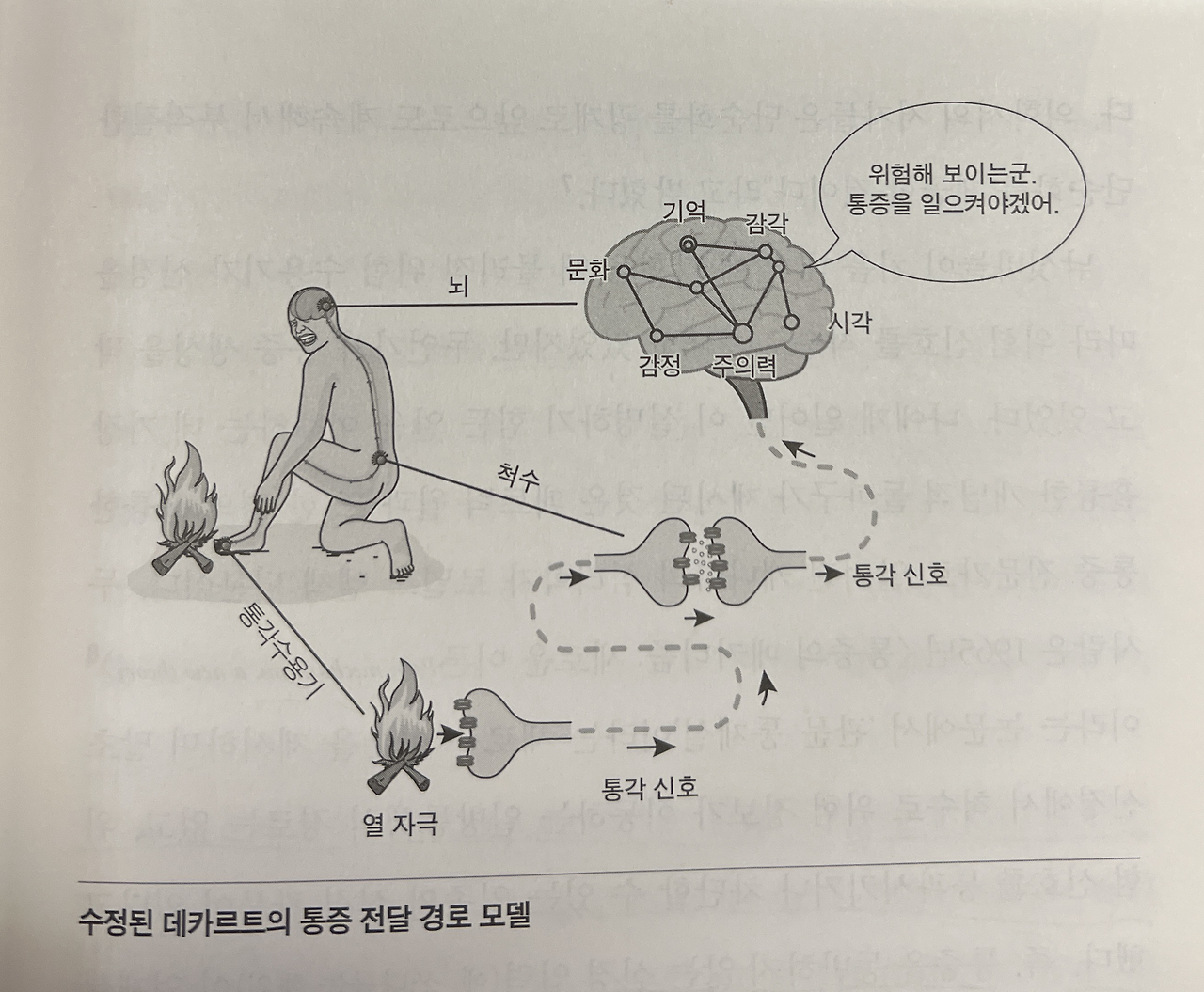 통증은 뇌에서 만들어진다. 우리의 의식적 통제 밖에 있는 뇌가 우리에게 위험에 처해 있다는 것을 의식적 마음에 알리는 위한 결정이다 35p. 우리 몸의 대부분의 무의식적인 반응들은 보호기전에서 나온다. 생존이라는 자체가 우리에게 가장 중요하고 가장 먼저 발동되는 것이 생존 시스템이다. 우리 몸은 위험상황이 발생하면 보호가 필요한지 판단을 한다. 필요하다고 판단이 내려지면 내 의식에서 자각할수 있도록 신호를 주는 것이 통증이다. 통증이라는 자극을 주어 행동을 취하게 한다. 그렇다면 통증은 반드시 나쁘다고 할수 없는거 같다. 마약 통증이 없다면 생존에 위험하기 때문이다.