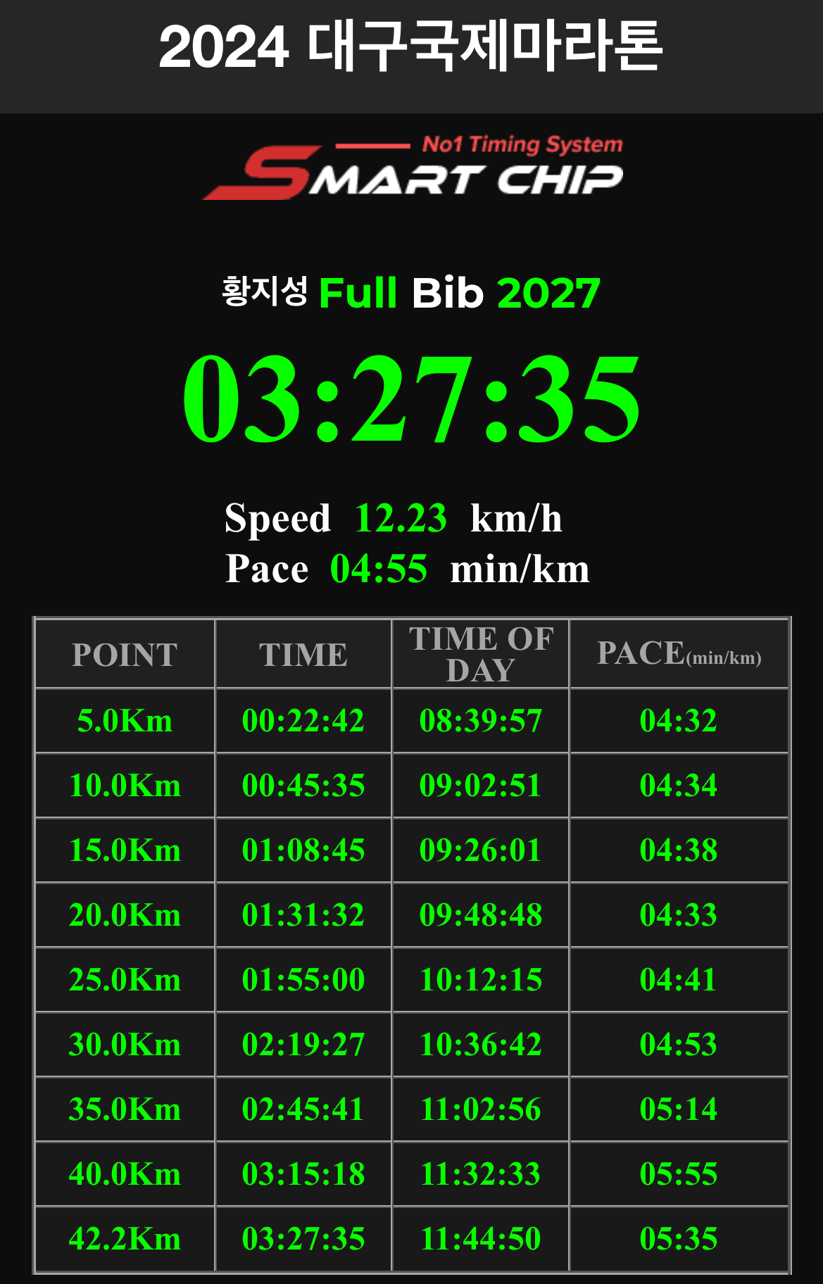 이번 대회에는 320을 목표로 세웠다. 기존 기록보다 4분 정도만 줄이면 가능한 목표이기에 충분히 가능하지 않을까 판단했다. 확신없이 판단만 한 이유는 계획적이고 체계적인 훈련이 아니었기 때문이지 훈련량이 적지는 않았다.