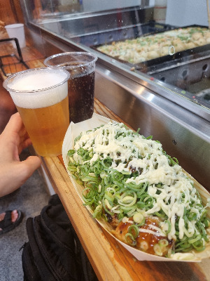 얼마 기다리지 않아 다코야끼를 한입 베어물고 미니 맥주를 한 모금 넘기니 그렇게 맛있을 수가 없었다.