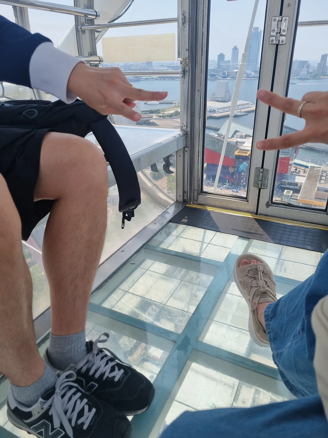 해유관에 들어가는 길에 덴포잔 대관람차가 있다. 런던아이는 너무 비싸서 못 탔었는데, 덴포잔 관람차는 부담 없는 요금이었다. 기다리는 사람도 없어서 바로 탑승했고, 관람차 내부 에어컨 바람도 시원하고 쾌적했다.