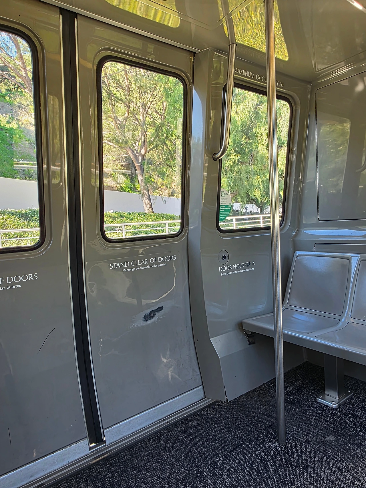 어딘가 높은 곳으로 올라가는 구조라 자연스럽게 멋진 풍경을 모노레일 창 밖으로 볼 수 있었다. 도로 너머로 언덕 곳곳에 고급 빌라인지, 별장인지 모를 집들이 자리 잡고 있었는데 그 모습을 보며 '와, 여기가 LA구나.' 감탄했다.