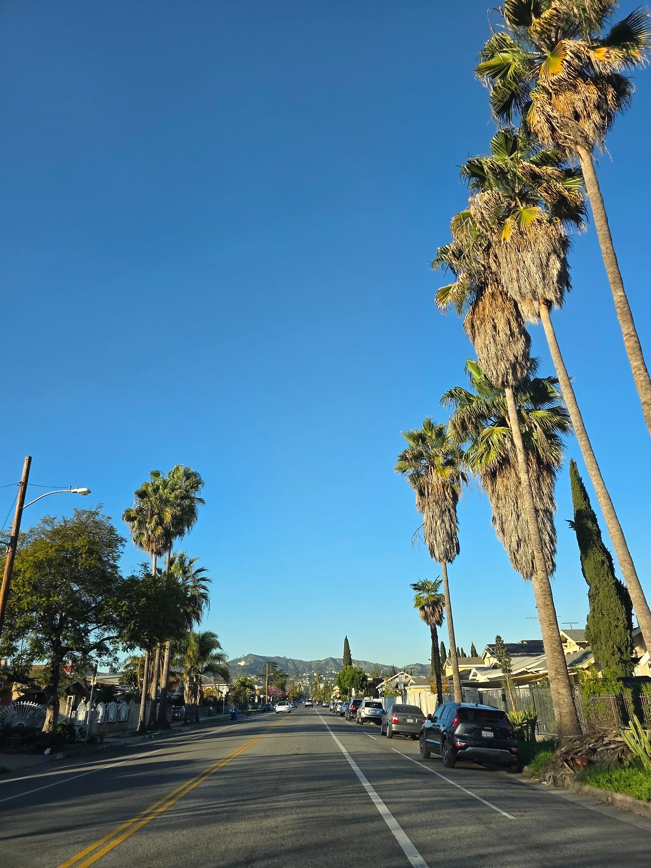 숙소 문을 열고 나가자 미친 듯이 좋은 날씨가 반겨줬다. 춥지도 덥지도 않은 온도에 숨 쉬는 것만으로도 상쾌한 새파란 하늘이 아무런 방해 없이 눈을 가득 채웠다. 이게 그 LA 하늘이구나 라는 생각이 들었다.