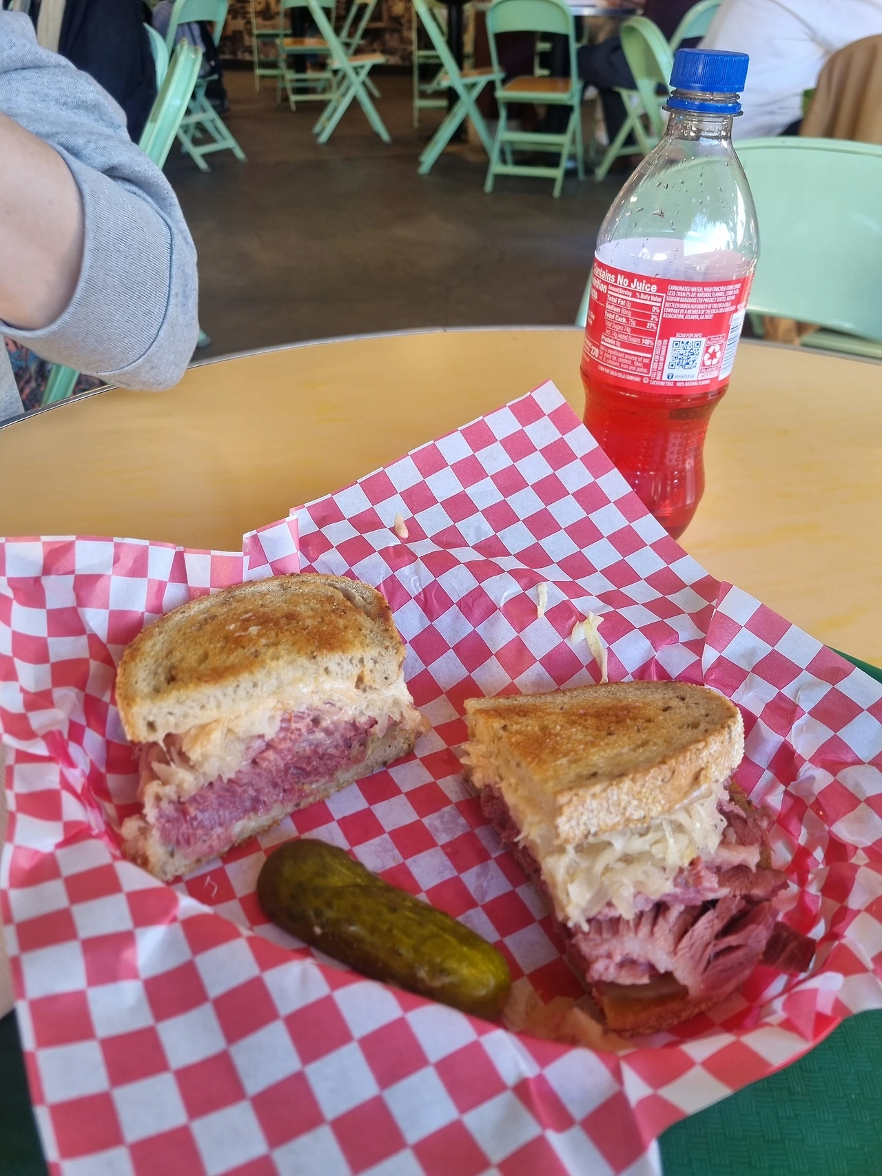 민이와 한참 고민하다 Corned Beef 샌드위치를 골랐다. 테이블에 앉아 한입 베어 물자마자 정말 짰다. 나는 Corned Beef가 옥수수를 먹여 키운 소인 줄 알았는데, Corn은 굵은소금 알갱이를 의미하고 소금에 절인 소고기를 뜻한다고 한다. 그러니 짠 게 맞았다.