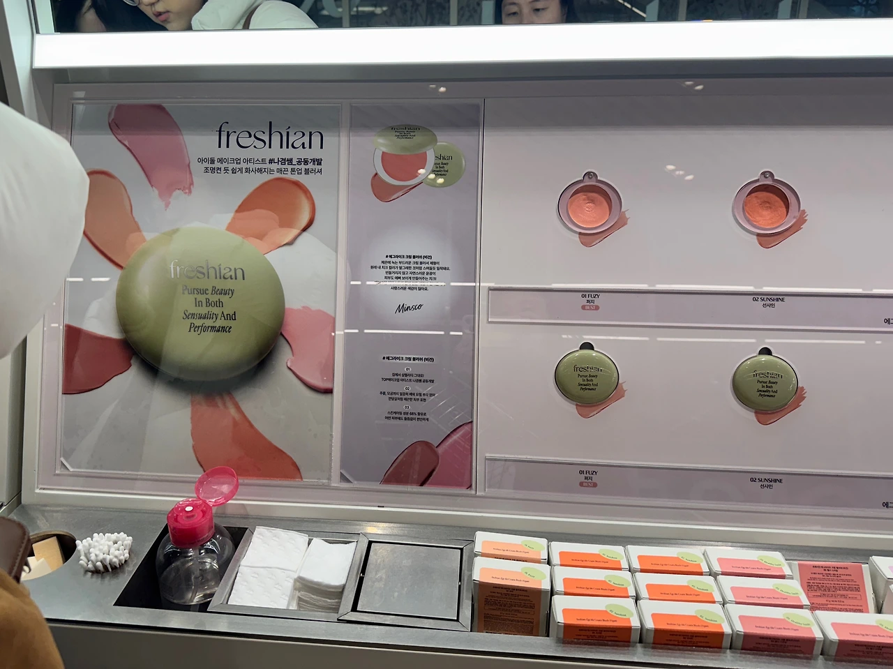 여기에서… 이 색이 잘 어울릴 것 같다며 써보지 않았던 컬러를 추천해 주었다. 마음에 드는 걸 사야 계속 바르더라는 말과 함께 말이다. 블러셔를 닦아내고 닦아낸 부분을 옆에 있던 팩트로 다시 발라주셨다.