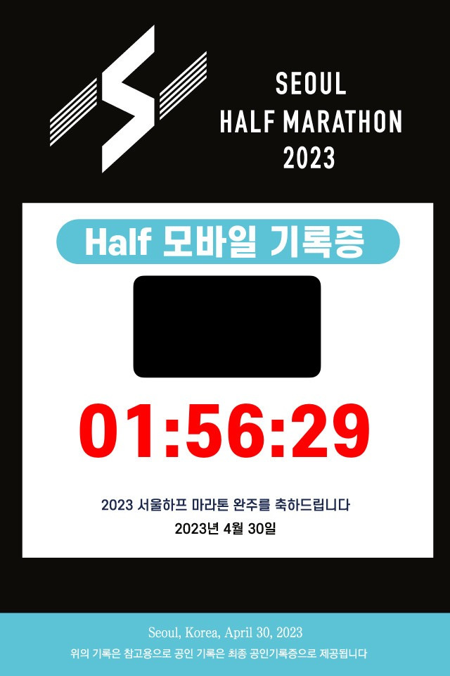 그렇게 나의 두 번째 마라톤, 하프 마라톤은 과연 우리가 풀코스 마라톤을 완주할 수 있을까라는 의문과더불어, 목표를 이루기까지의 기간을 최대한 짧게 설정하여 주어진 기간에 최선을 다하는 것이 나를 좀 더 많이 그리고 빠르게 성장시킬 수 있다는 교훈을 남긴 채 마무리되었다.