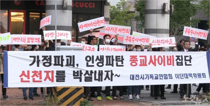 아니, 북한도 아니고 어떻게 저렇게 많은 사람들이 우리나라에서 저런 미친 종교를 믿고 저 짓을 하지?! 어째서 누가 봐도 멀쩡한 사람들이 저런 쭈글 망태기 영감을 신처럼 받들면서 자신의 소중한 인생을 버릴 수 있는 걸까?!