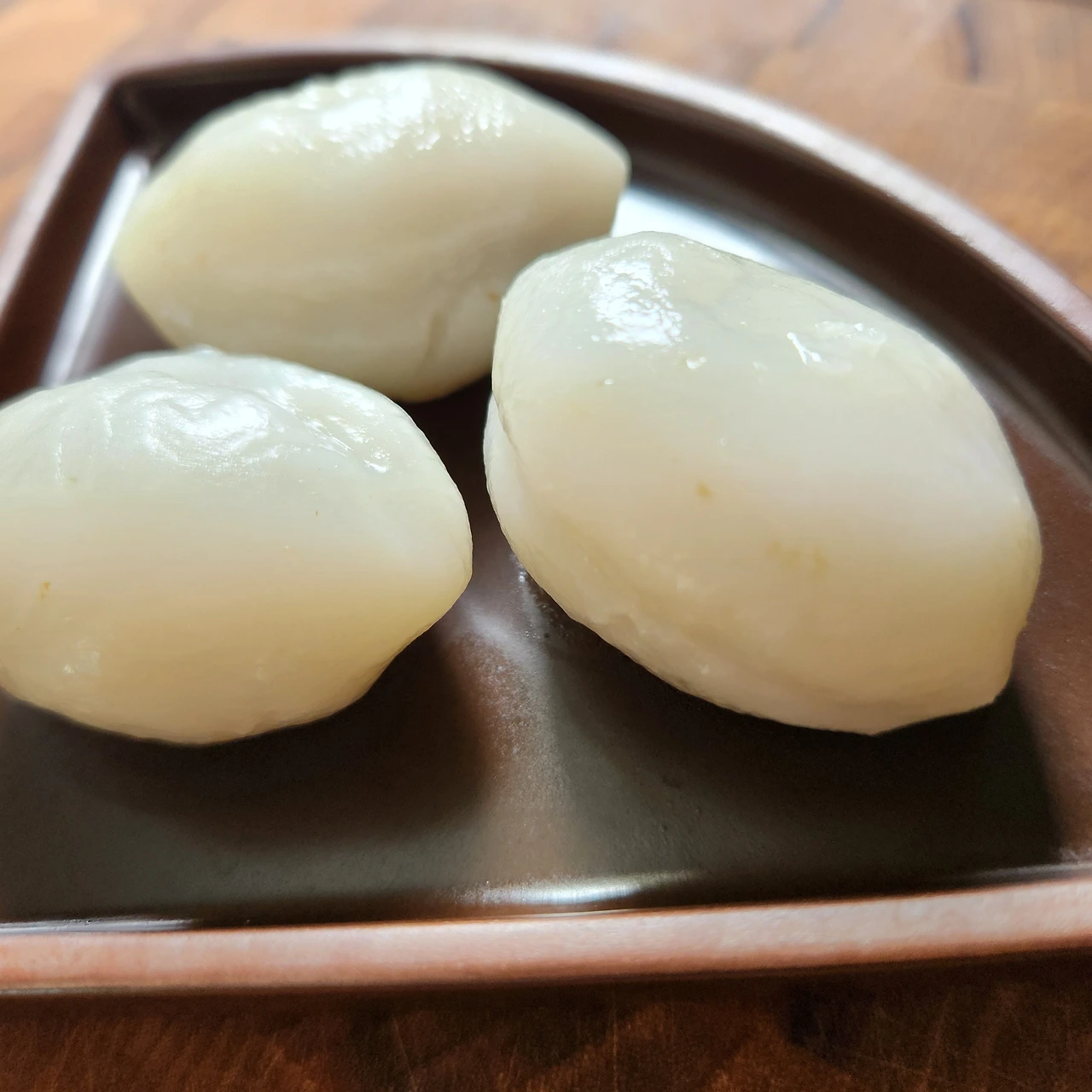 맵쌀을 뜨거운 물로 반죽해서 깨+설탕 소를 넣어 쪄냈다.
