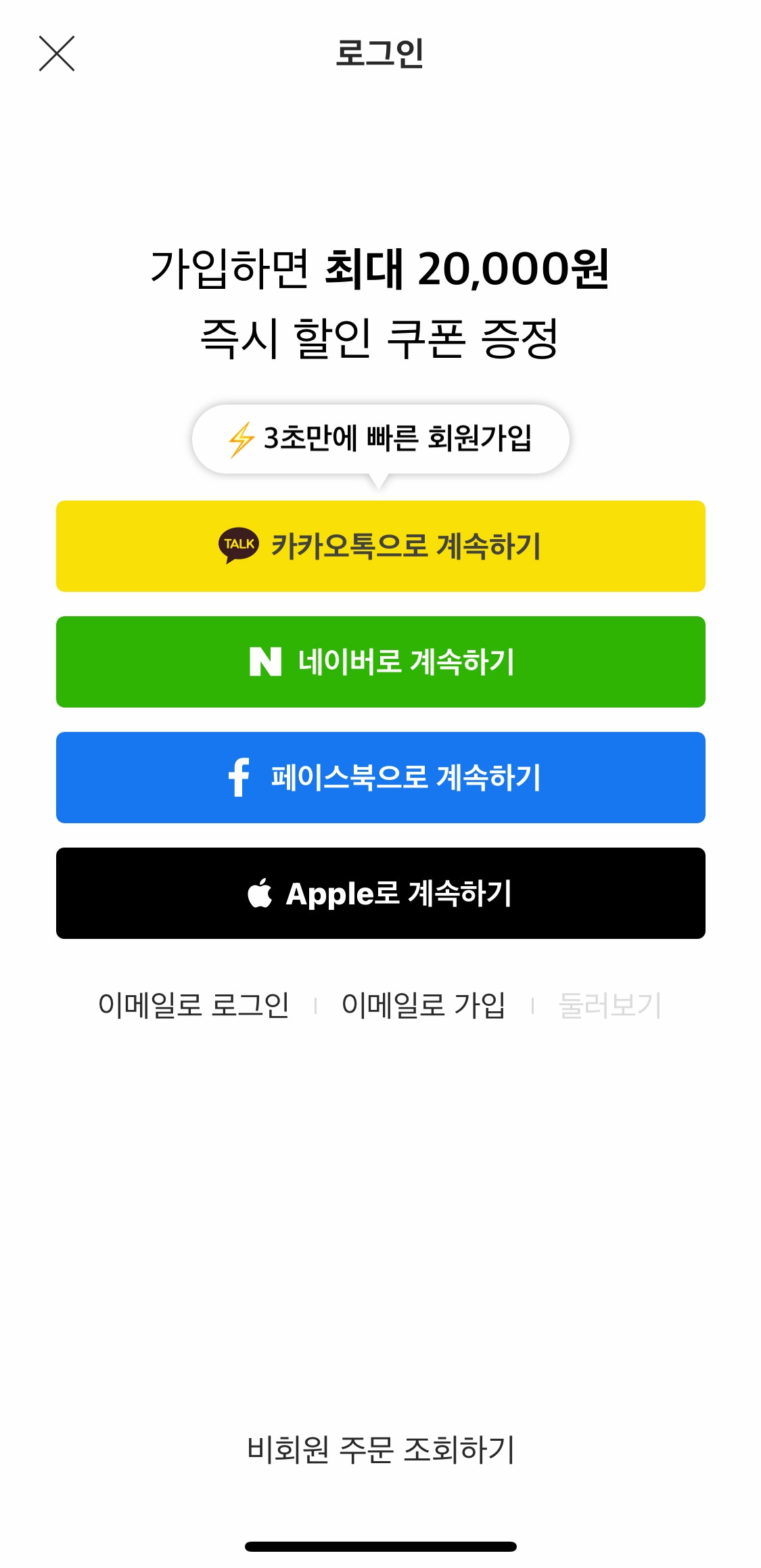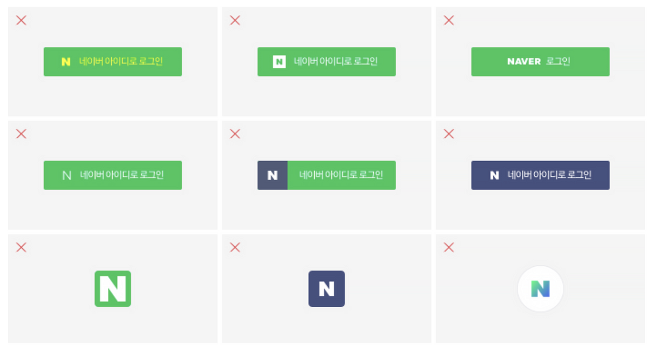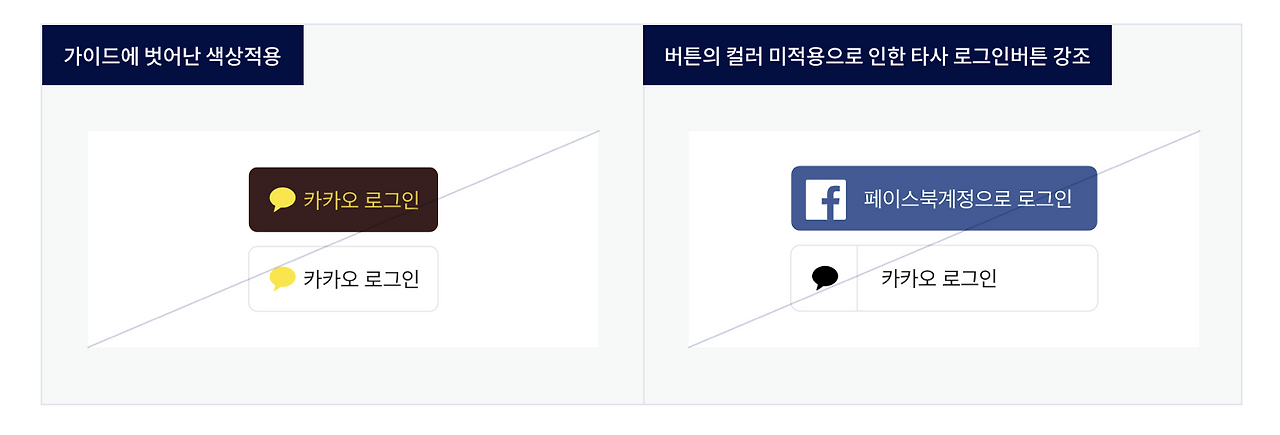 *버튼의 색상을 지정하지 않아 타사 로그인 버튼이 강조돼서는 안 됩니다.