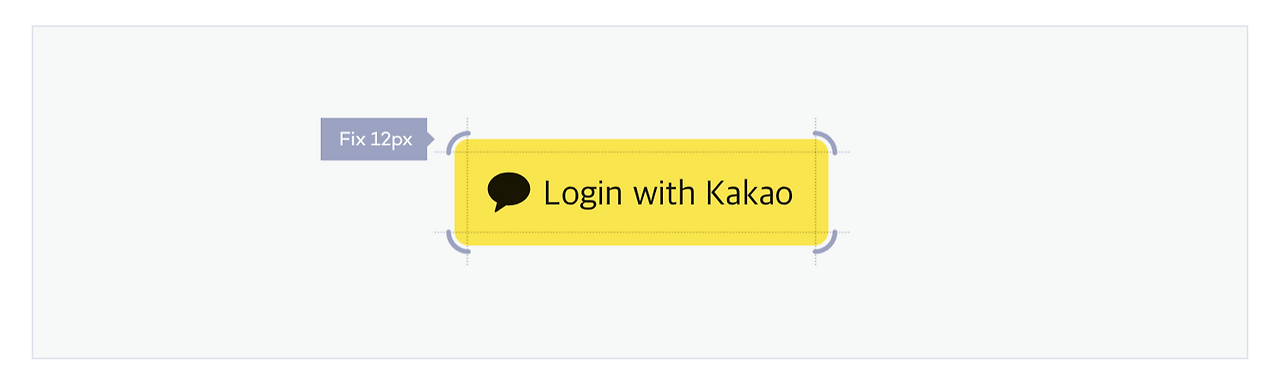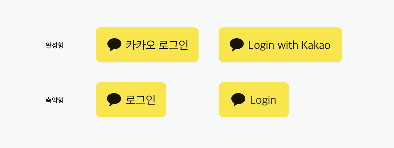 하지만, 모두가 기본 UI를 사용하는 게 아니다. 서비스에 맞게 수정을 하는 경우도 있다. 이럴 경우 카카오가 싫어할까? 카카오 로그인 활용가이드를 살펴보면 '서비스의 UI/UX에 맞춰 카카오 로그인 버튼의 수정이 필요할 경우, 버튼을 유동적으로 재구성하여 사용할 수 있습니다. 카카오 고유의 이미지를 해치지 않는 범위 내에서 아래 버튼 디자인 규정을 따라 제작합니다.'라고 명시해두었다. 즉 카카오에서도 서비스에 맞게 수정해도 상관없다고 말한다. 다만 카카오 고유 이미지를 해치지 않는 범위 내라고 제한을 하고 있다.