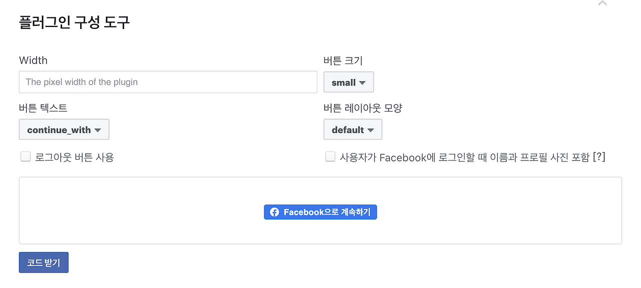 페이스북은 플러그인 구성 도구를 지원해서 텍스트 선택과 3가지 버튼 레이아웃 모양을 바로 볼 수 있도록 제공해주고 있다.