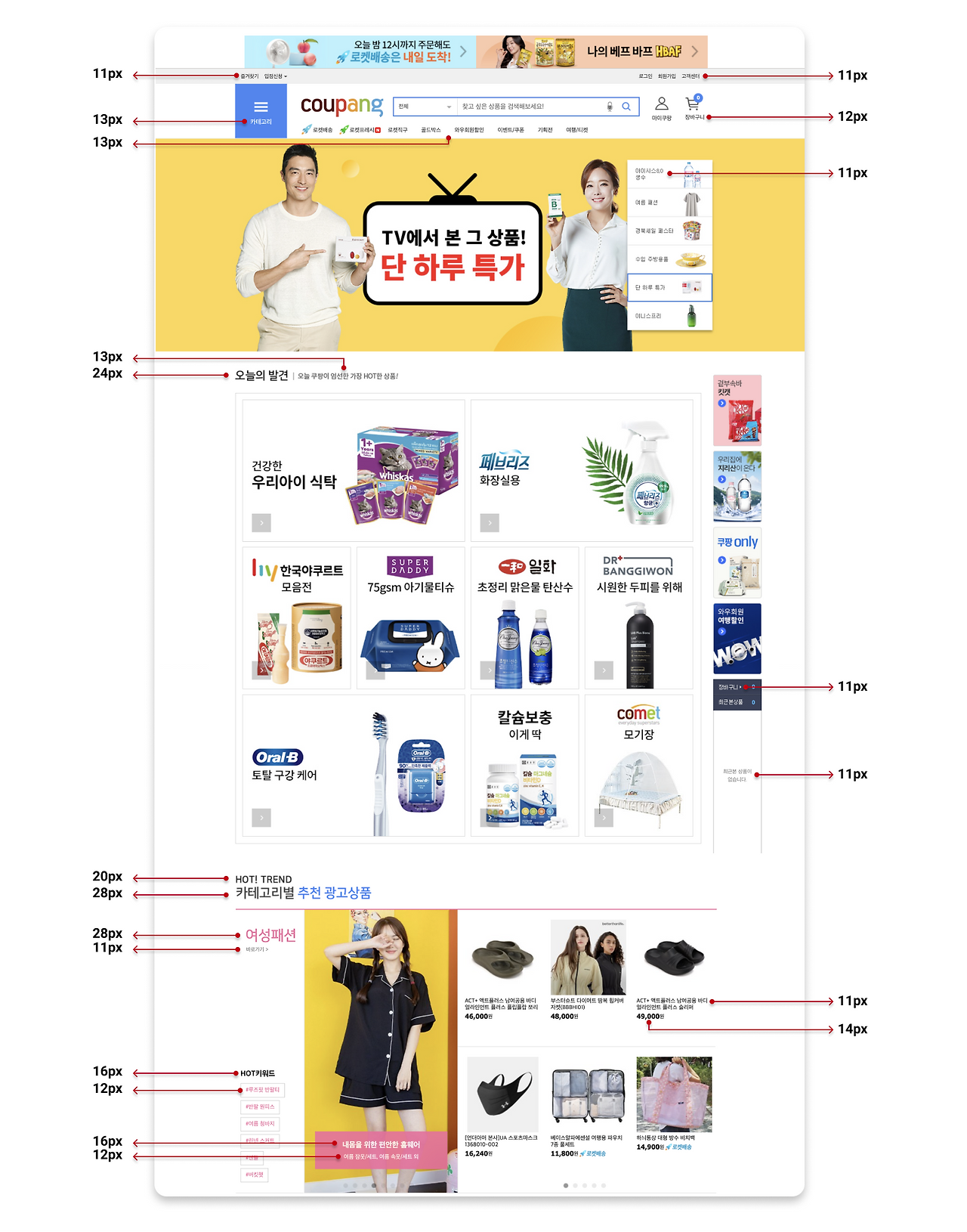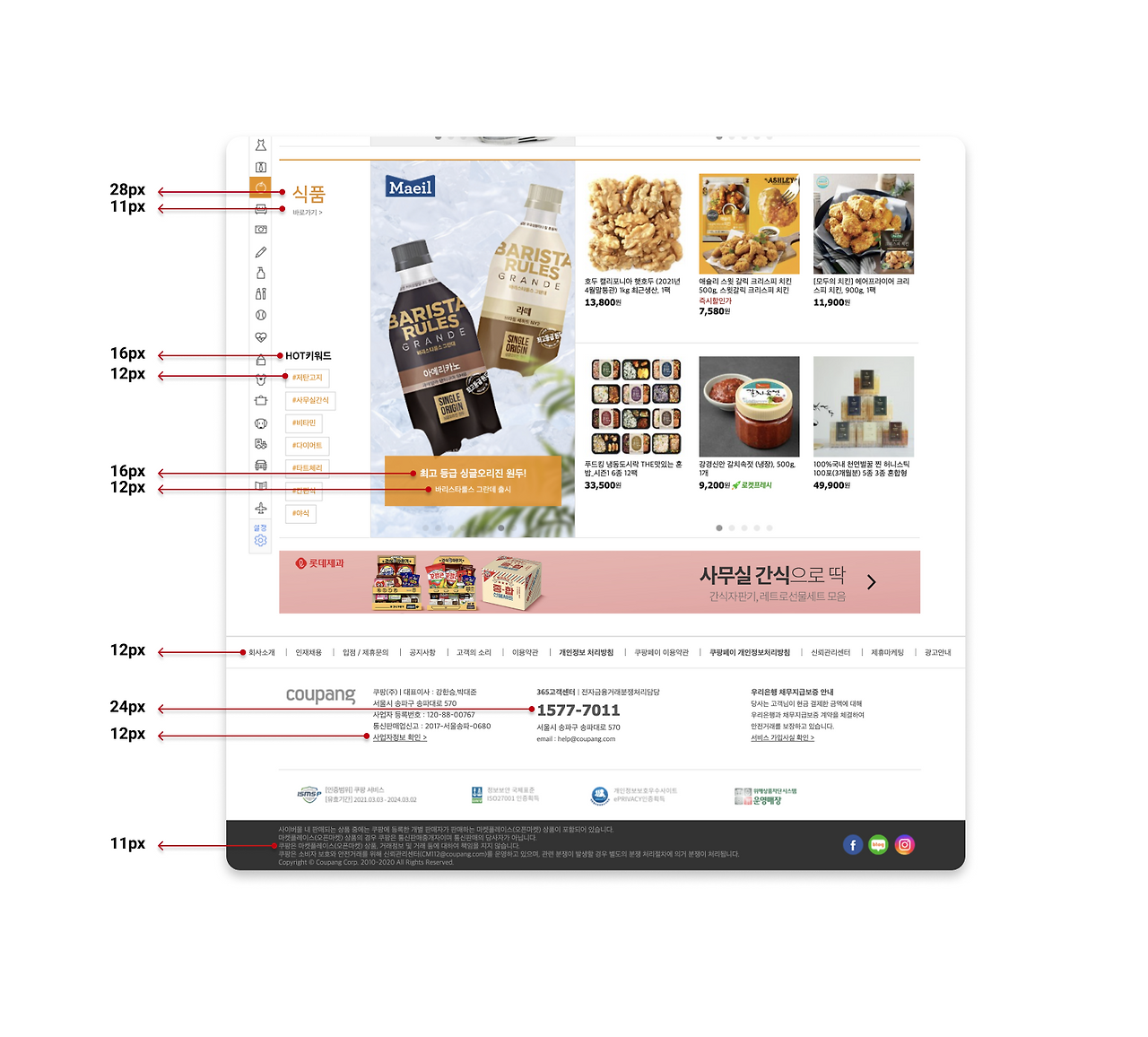 사용된 사이즈 : (이미지)28px, 24px, 16px, 14px, (이미지)13px, 12px, 11px,
