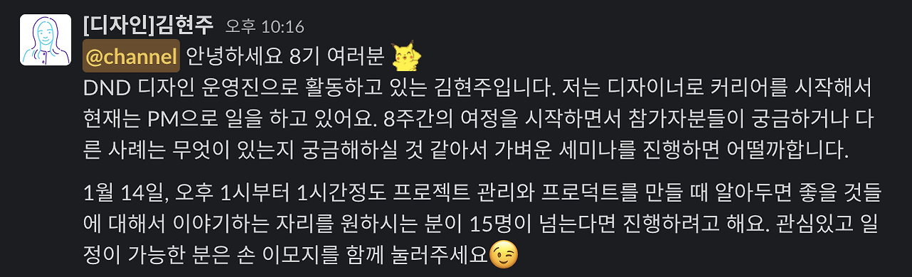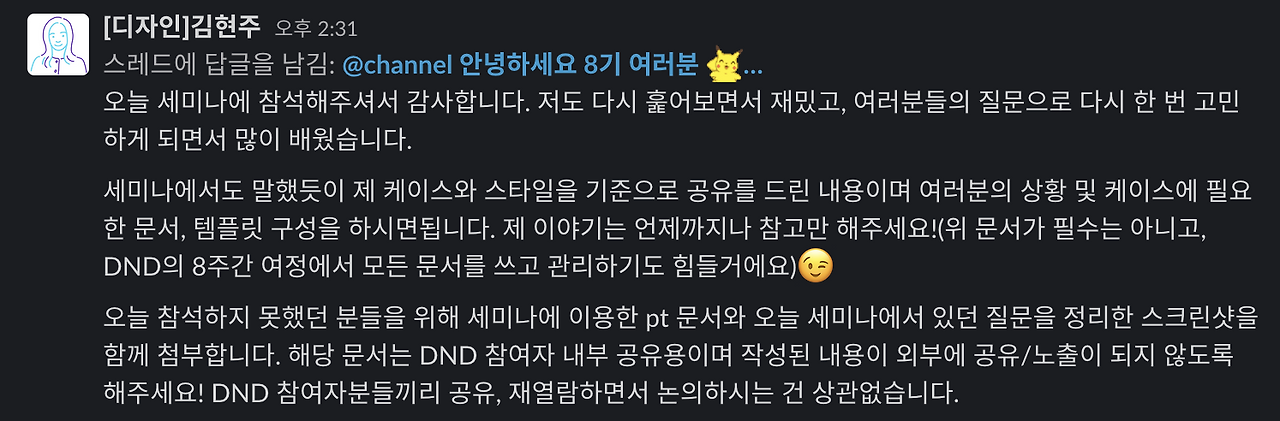 3. 슬랙을 통해 DND 참가자에게 세미나 공지