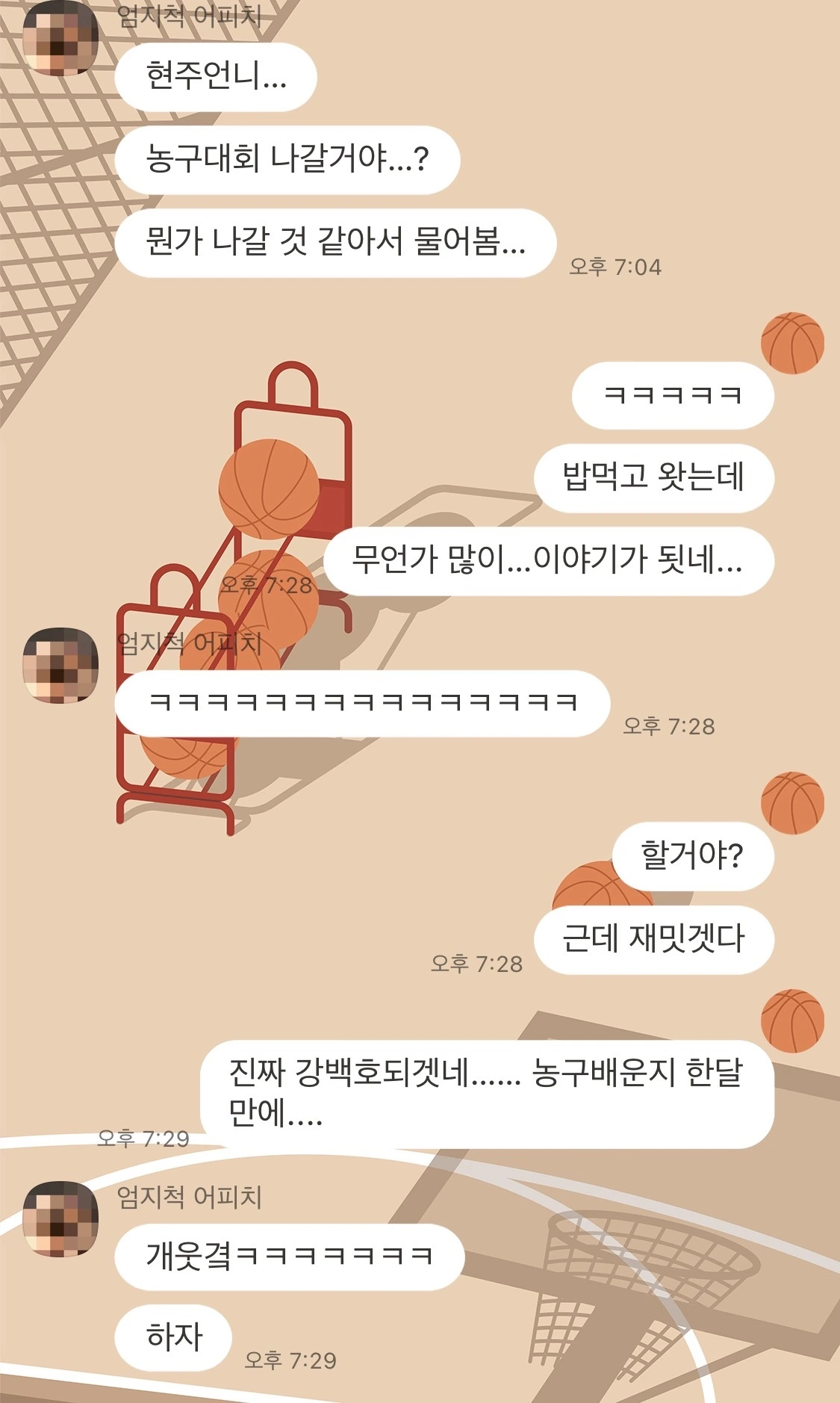 주말에 농구 수업을 받기 시작했다. 두 번쯤 수업을 받고 난 뒤, 코치님이 팀을 이뤄서 대회에 나가볼 사람이 있는지 물었다. 같이 농구를 시작한 동생에게서 개인톡이 오기 전까진 아무 생각 없었다. 이제야 농구공을 사고 기본 드리블을 배우고 있는데 대회를 나갈지 고민을 하는 건 마치 렙 1에게 만렙 보스를 잡자고 하는 거 아닌가?