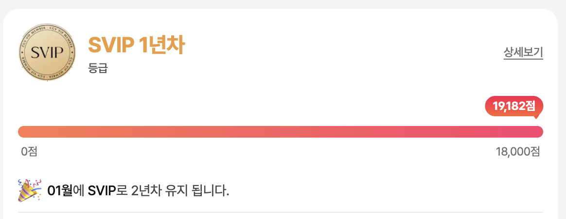 24개의 영화를 보면서 CGV SVIP를 유지하게 되었다.