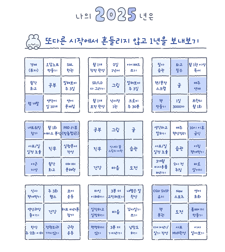 저번 글로 25년을 시작하면서, 25년에 이루고자 했던 목표를 점검해 보았다.