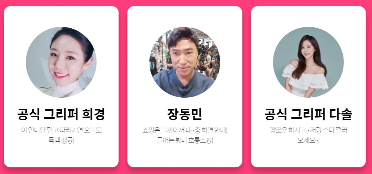 쇼호스트 지망생이나 인플루언서 출신의 '공식 그리퍼'라는 전문 쇼호스트도 갖추고 있다.