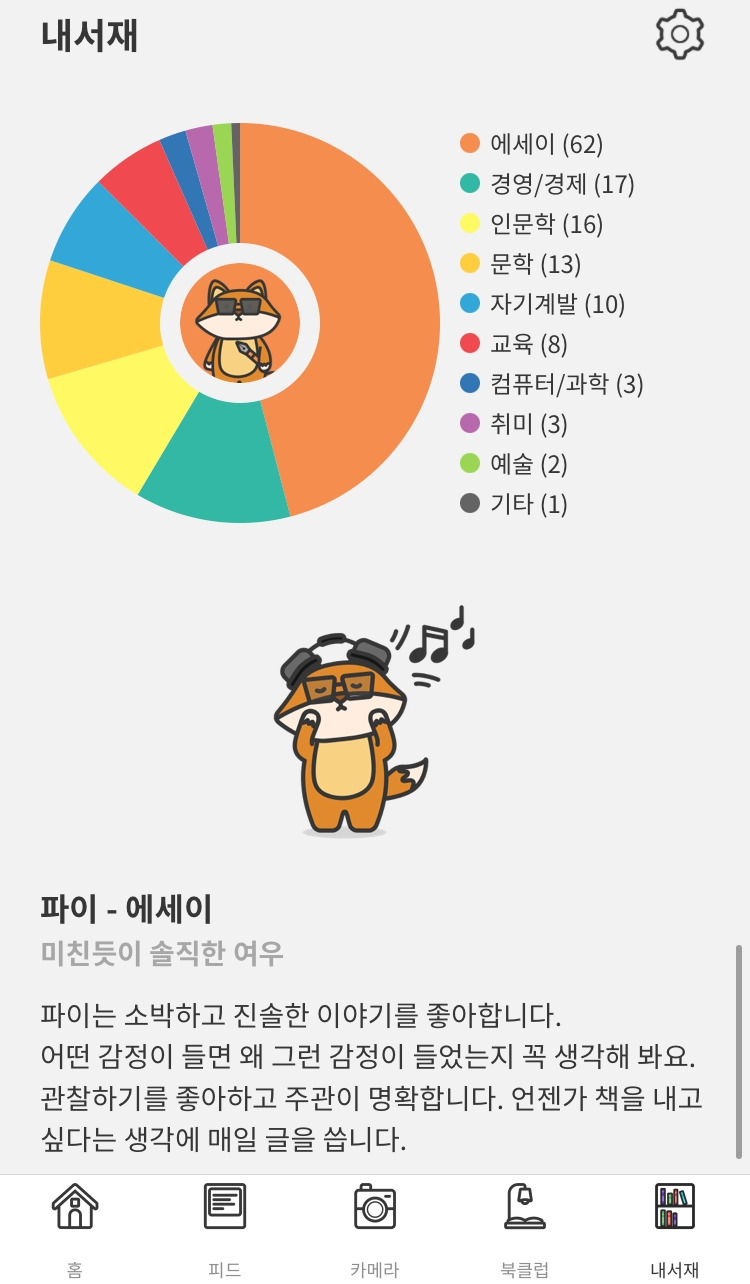 1. 책을 다 읽고 나면 '리더스'라는 앱에 기록한다. 20년 9월부터 읽은 책들의 데이터가 쌓이고 나니 어떤 분야를 많이 읽었는지 볼 수 있었다.