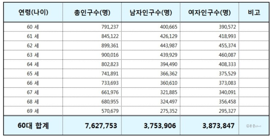 65세 부터는 단순 숫자로도 여자가 남자보다 많아지지만 건강한 사람도 여자가 남자보다 훨씬 많아진다. 생애동안 여성들도 이런저런 스트레스가 있었겠지만 남자들이 직장에서 받은 스트레스가 훨씬 컷을 것이고 술과 담배에 쩔어 사는 사람이 많아서 60넘어 급격히 건강이 나빠지지 않나 생각한다. 정말 건강했던 나도 60넘으면서 이곳저곳이 고장나고 있으며 쿠알라룸푸르 한달살이 오면서 약을 한보따리 챙겨와야 했다. 시간이 지날수록 고장이 늘어날 것이다.