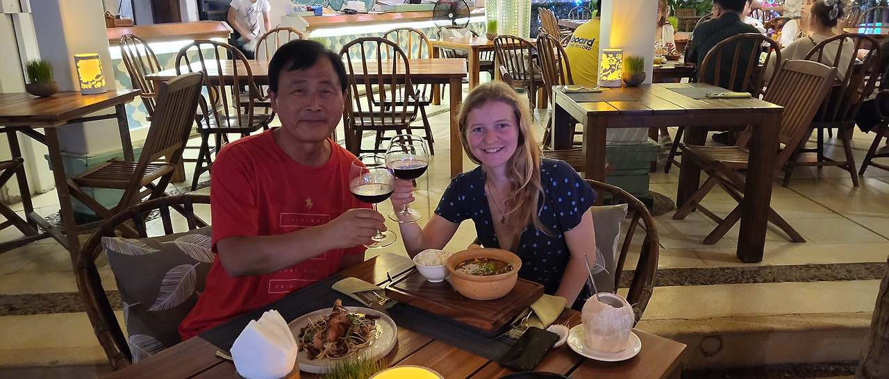 딸내미에게 저녁 함께 먹을 사람 없으면 연락하라고 전화번호를 주고 왔다. 저 많은 젊은 남녀들이 서로 어울려서 놀겠지 나에게 전화하겠나 생각했는데 얼마 후 연락이 왔다. 내숙소 근처에 있는 해변 식당 겸 클럽으로 불렀다. 딸내미는 노출이 많은 옷을 입고 나왔는데, 자유분방한 서양의 문화에 익숙하지 않은 나에게는 다소 낯선 차림이었다. 하지만 함께 식사를 하며 대화를 나누자, 그 낯선 첫인상보다 순수하고 솔직한 모습에 마음이 놓였다.