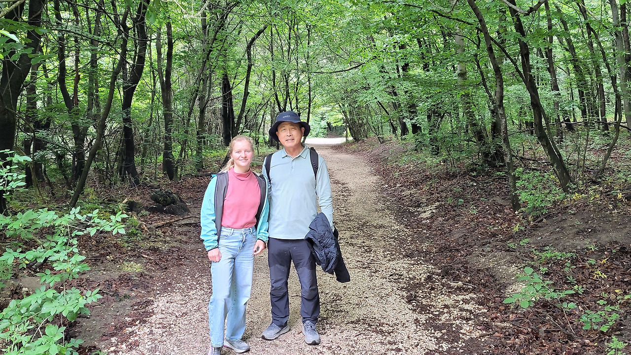 만나면 소풍 가듯이 배낭에 간식을 준비해서 도시 외곽에 있는 산으로 가서 걸었다. 버스 타면서 내가 I am 68 years old라고 하면 안나는 뒤에서 My grandfather 라고 하면서 추임새를 넣는다. 할아버지라고 부른 이후 더 친근하게 행동한다. 부다페스트 주변의 산들은 남산정도로 야트막 하지만 나무가 빽빽하고 트래킹 코스가 잘 되어 있다. 안나는 산세 좋은 조지아에서 살아서인지 4천 미터급의 산을 며칠씩 비박하며 등산하는 강철 체력이다. 내 걸음이 꽤 빠른 편인데 나보다 더 빨리 걷는다. 한국 여행카페에서 5060들과 트래킹 다니면서 걷는 속도가 느려 답답했었는데 함께 빠르게 걸으니 걷는 재미가 좋다. 한번 가면 서너 시간 빽빽한 산길을 이리저리 열심히 걸으며 경치 좋은 곳에 잠깐 쉬면서 배낭에 가져온 과일과 빵을 먹으며 허기를 달랜다. 야생화가 곳곳에 피어있는 아름다운 숲길을 딸내미와 손잡고 걷는 기분이 상큼하다.