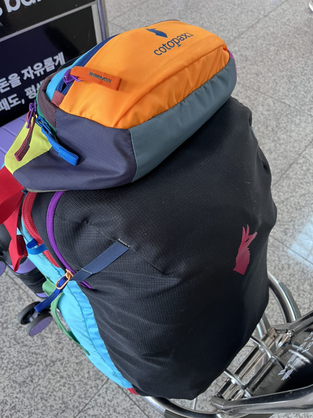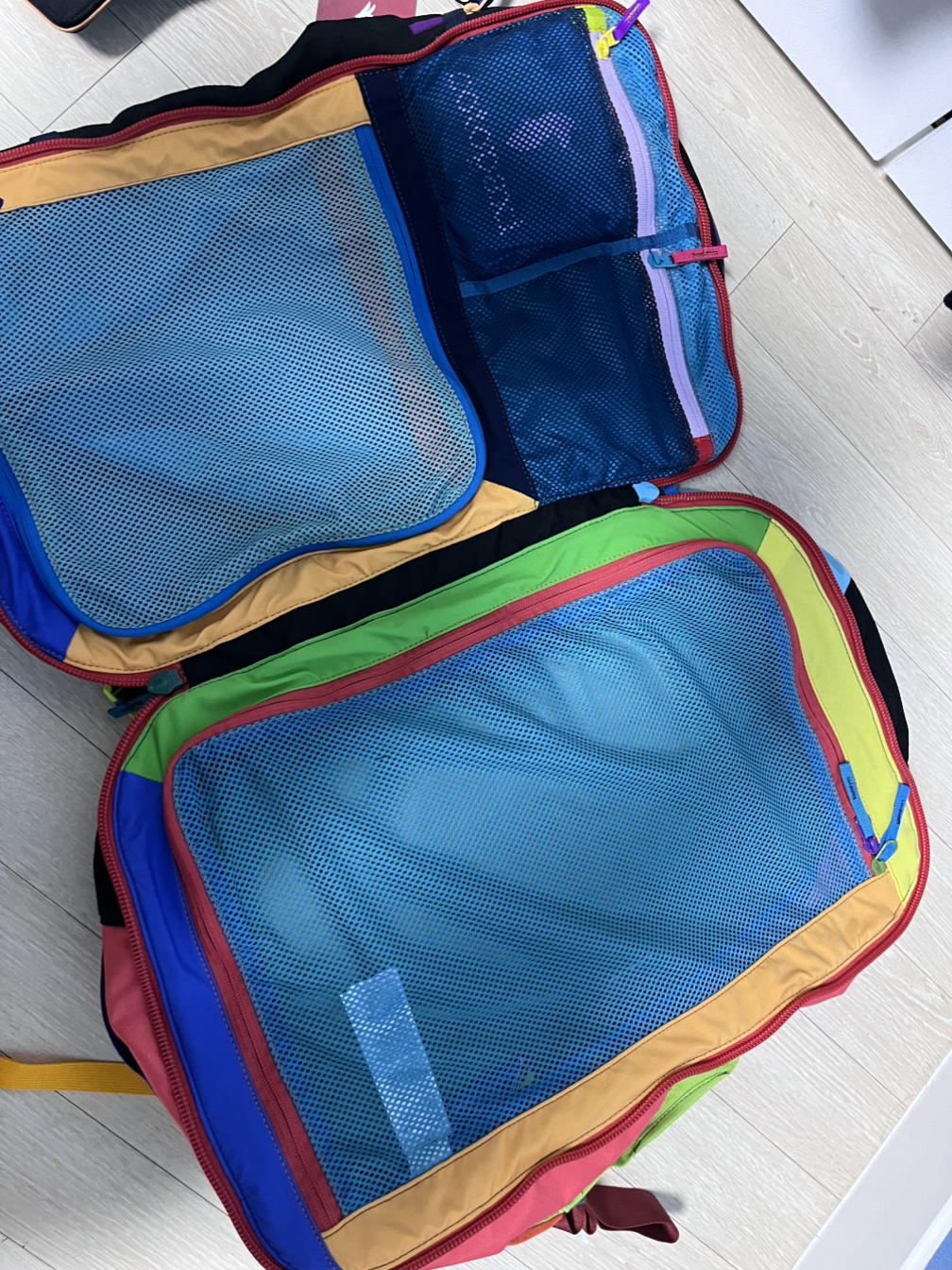 캐리어처럼 활짝 열립니다. 인스타에서 보고 꽃혀 사겠다고 일본까지 날아갔다 오게 만든 나의 여행가방. 크기는 조금 작지만 정리광인 나에게는 딱 좋습니다 (코토팍시 알파 35L + 힙색 3L)