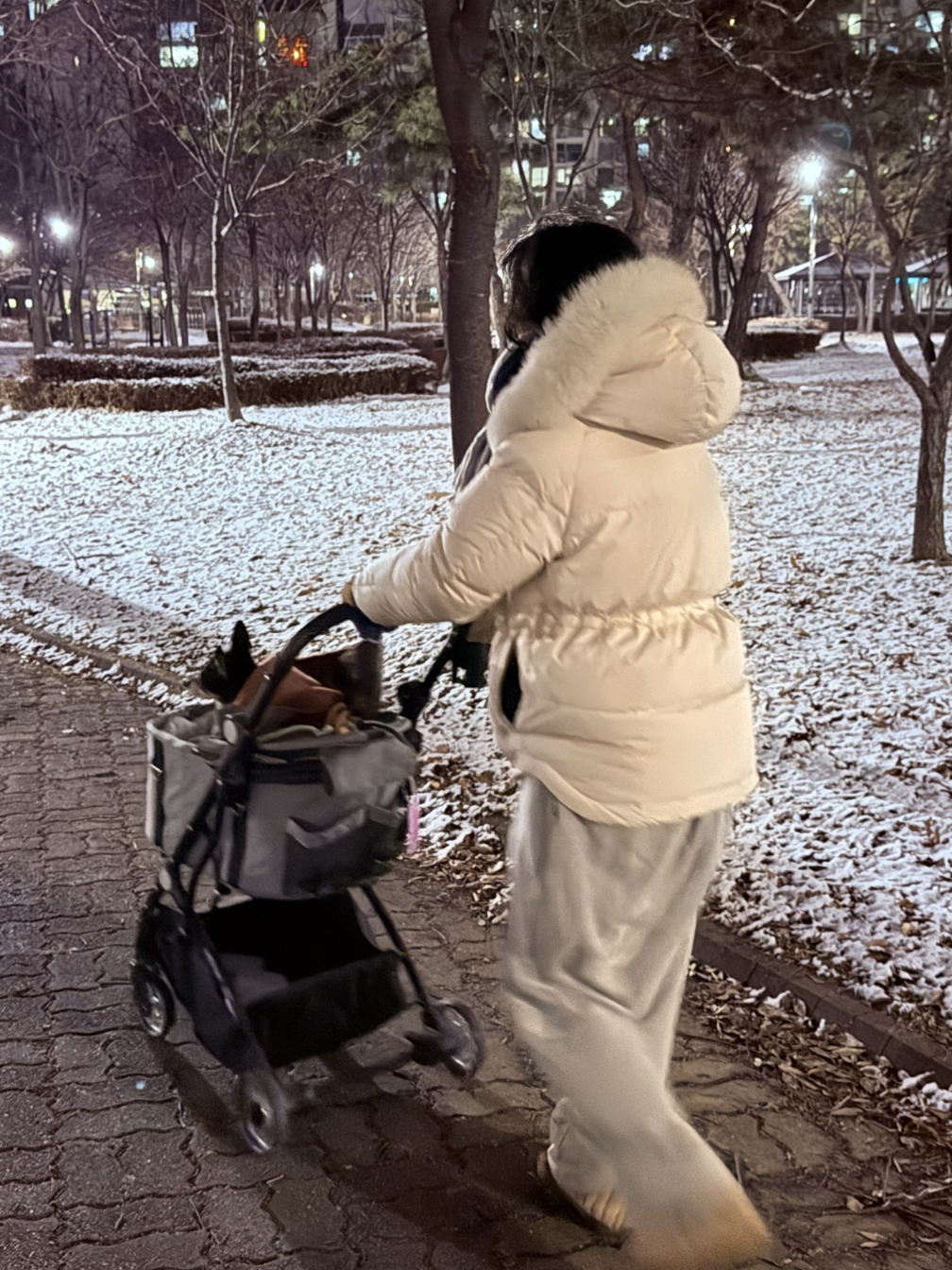 둘째 날, 늙은 강아지를 데리고 동물병원을 갑니다. 이상은 없는지 이곳저곳 체크하고, 이제는 잘 걷지 못하는 강아지를 품 안에 넣고 오랜만에 낮 시간에 산책을 합니다.