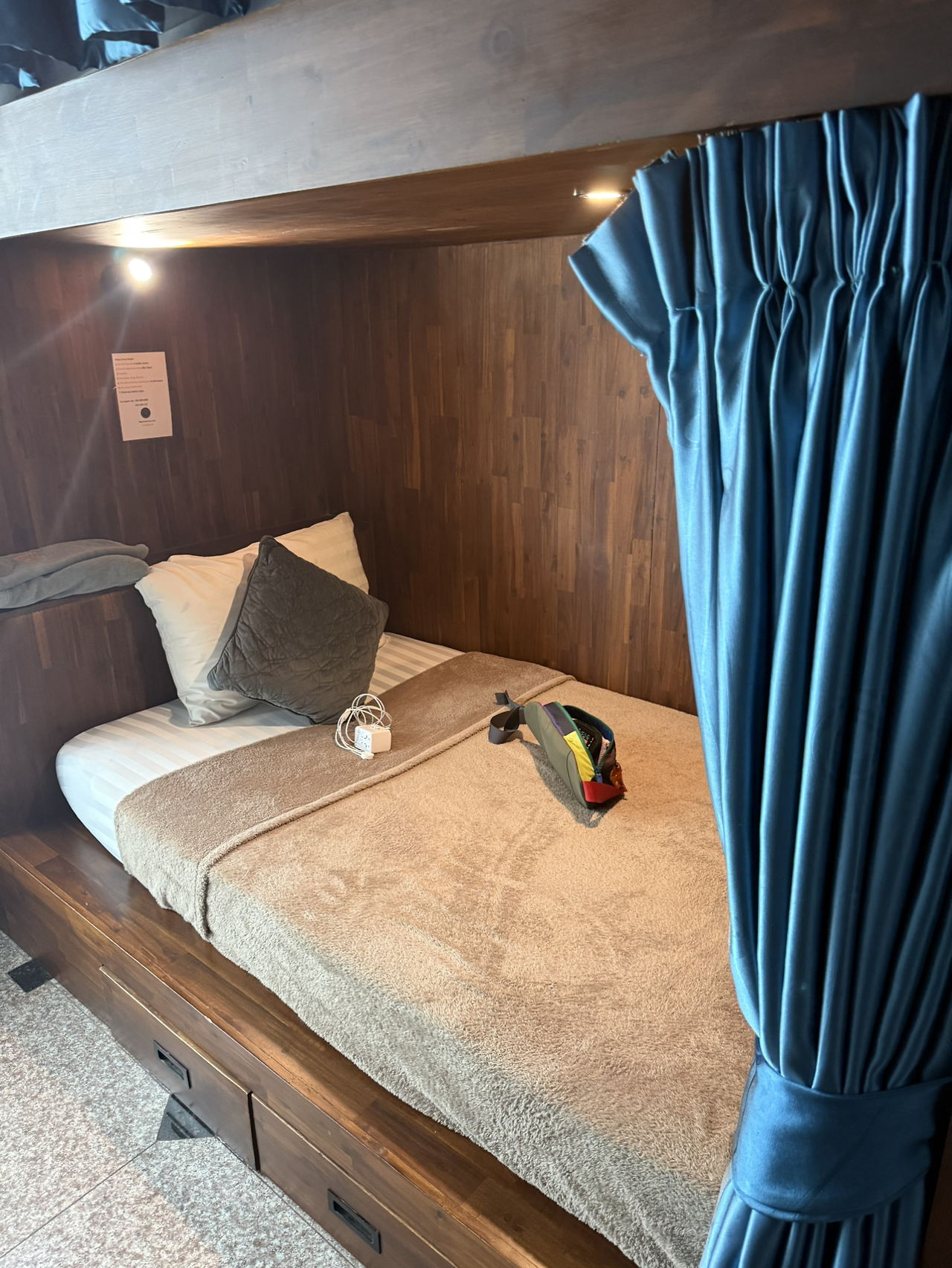 3. 개인 프라이버시를 위한 커텐과 콘센트가 있는 숙소를 추천.