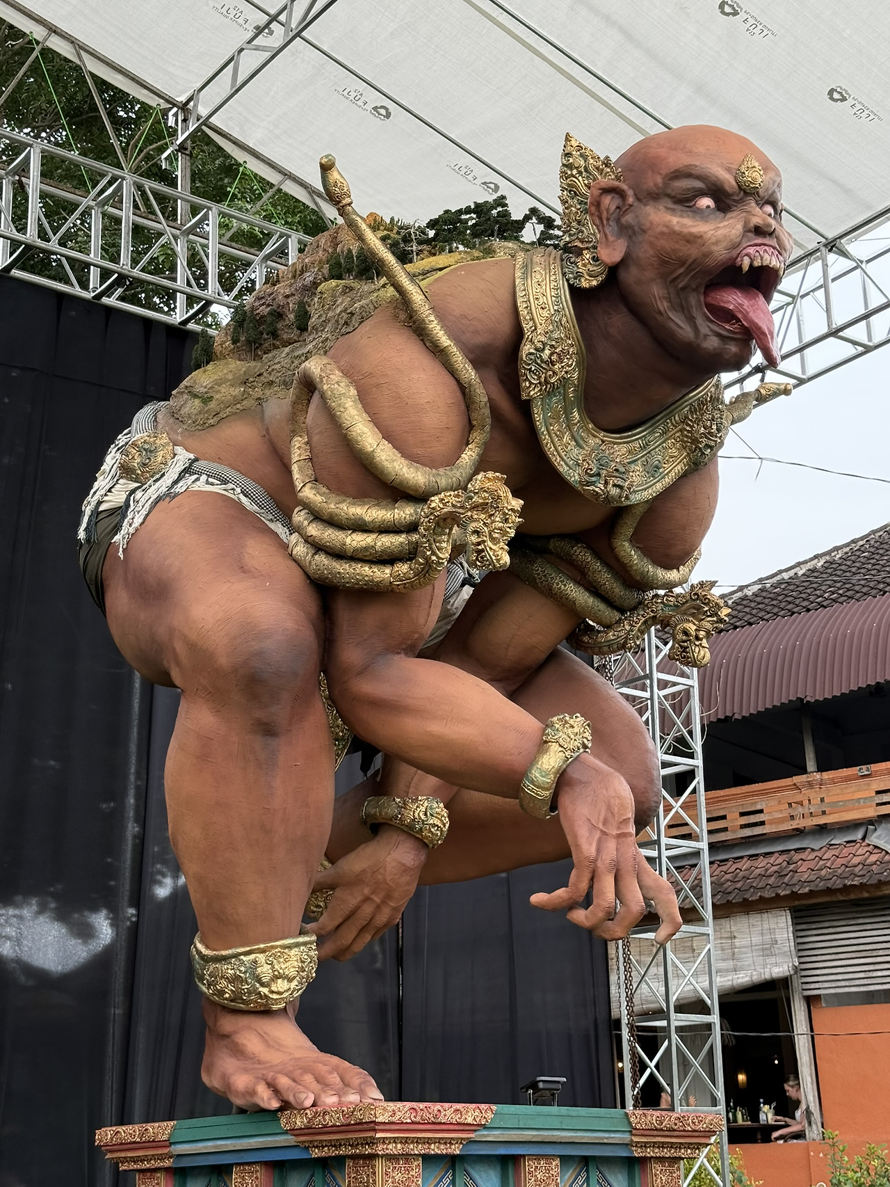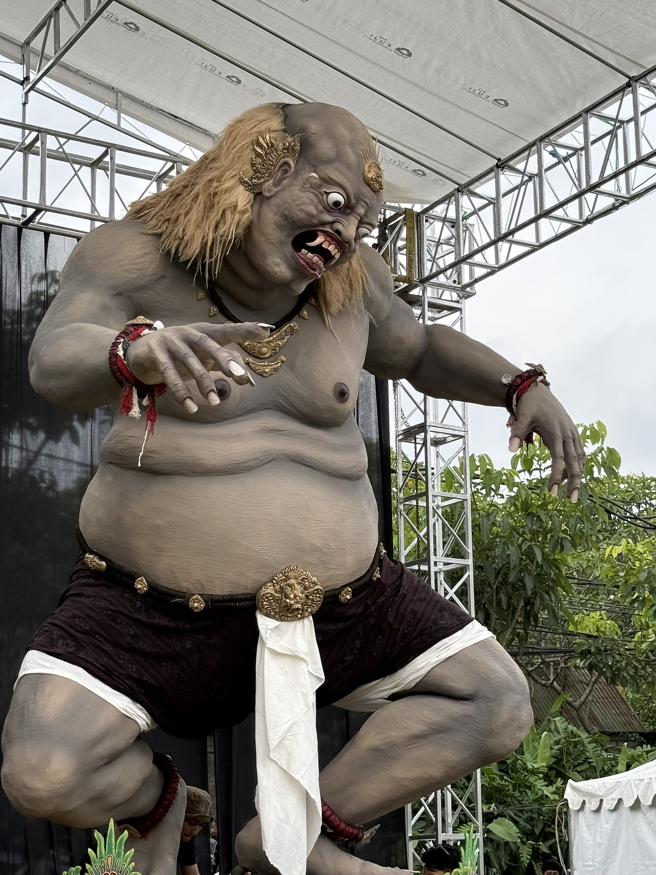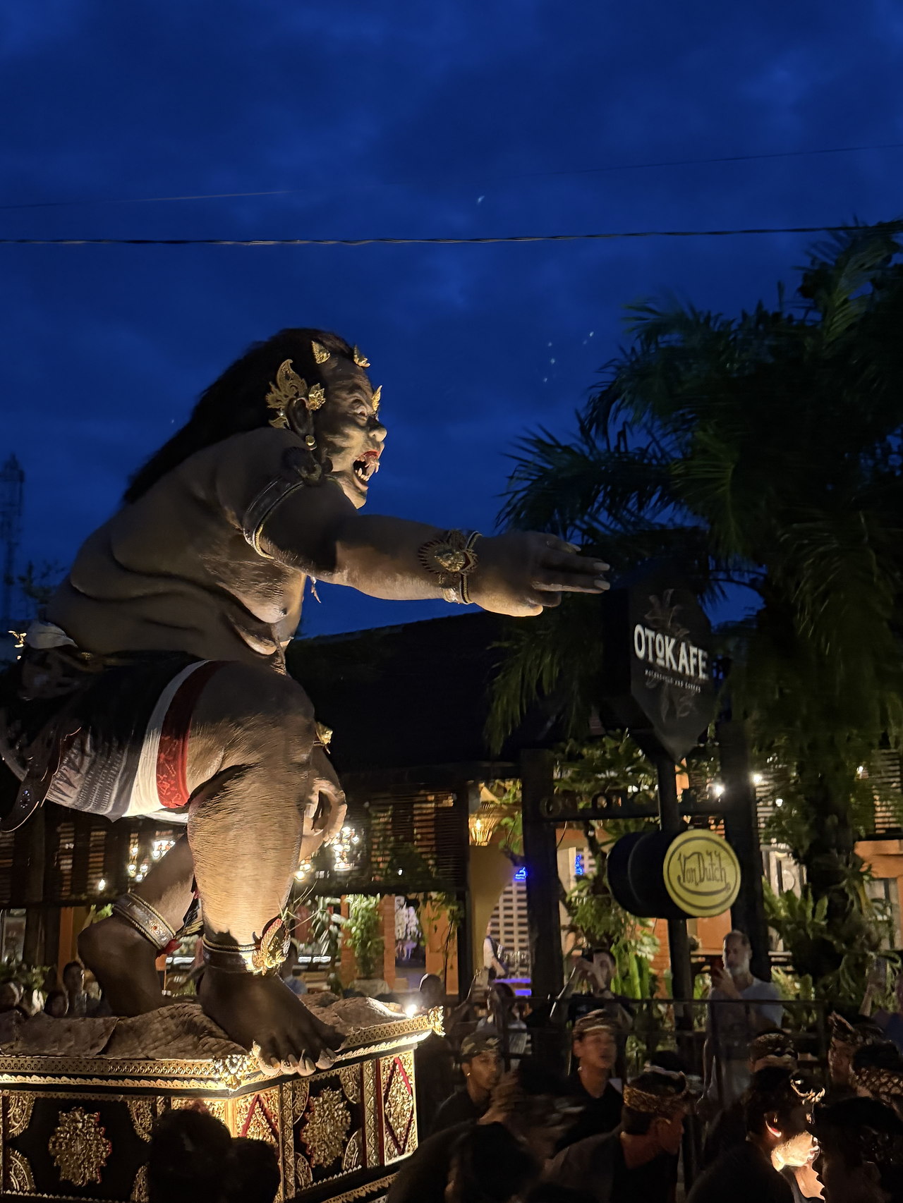 퍼레이드 이름에 들어가는 오고오고란 발리어로 흔들리다(ogho-ogho)라는 뜻을 가진 종이와 대나무 등으로 만든 악마 인형입니다.