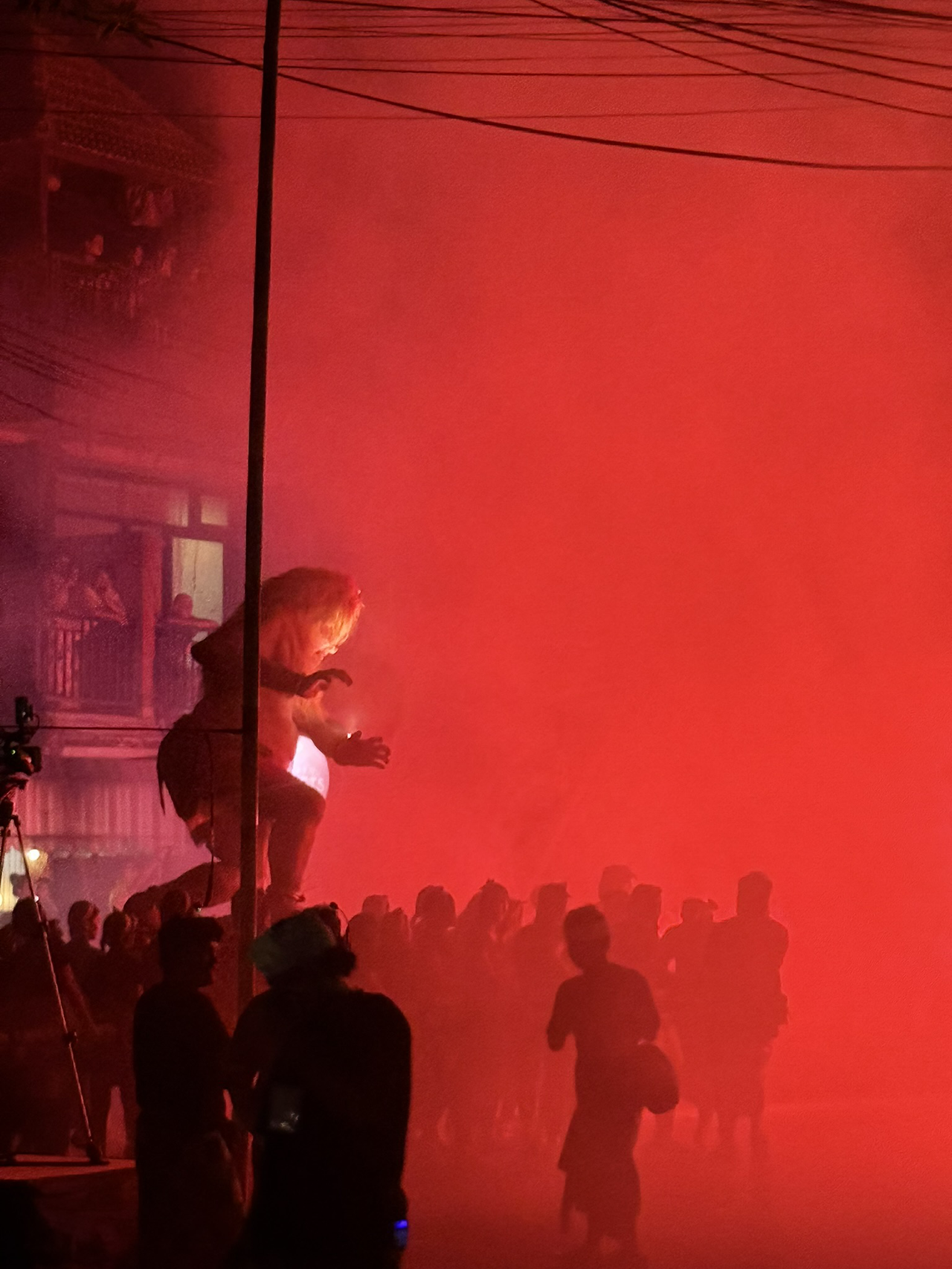 그리고 마침내. 목마를 타고 나무 위로 오르며 좋은 자리를 선점하려는 여행객들과 현지인들을 구경하던 와중 딸랑딸랑 영적인 느낌을 주는 발리의 전통악기와 함께 본격적인 축제가 시작되었습니다.
