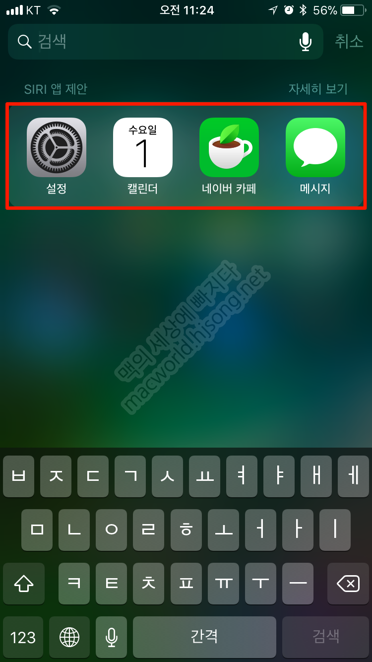 이렇게 남에게 보이고 싶지 않은 앱이 있는데, 그 앱이 시리 제안에 나온다면 저처럼 난감한 경우가 생길 수 있을 것 입니다.