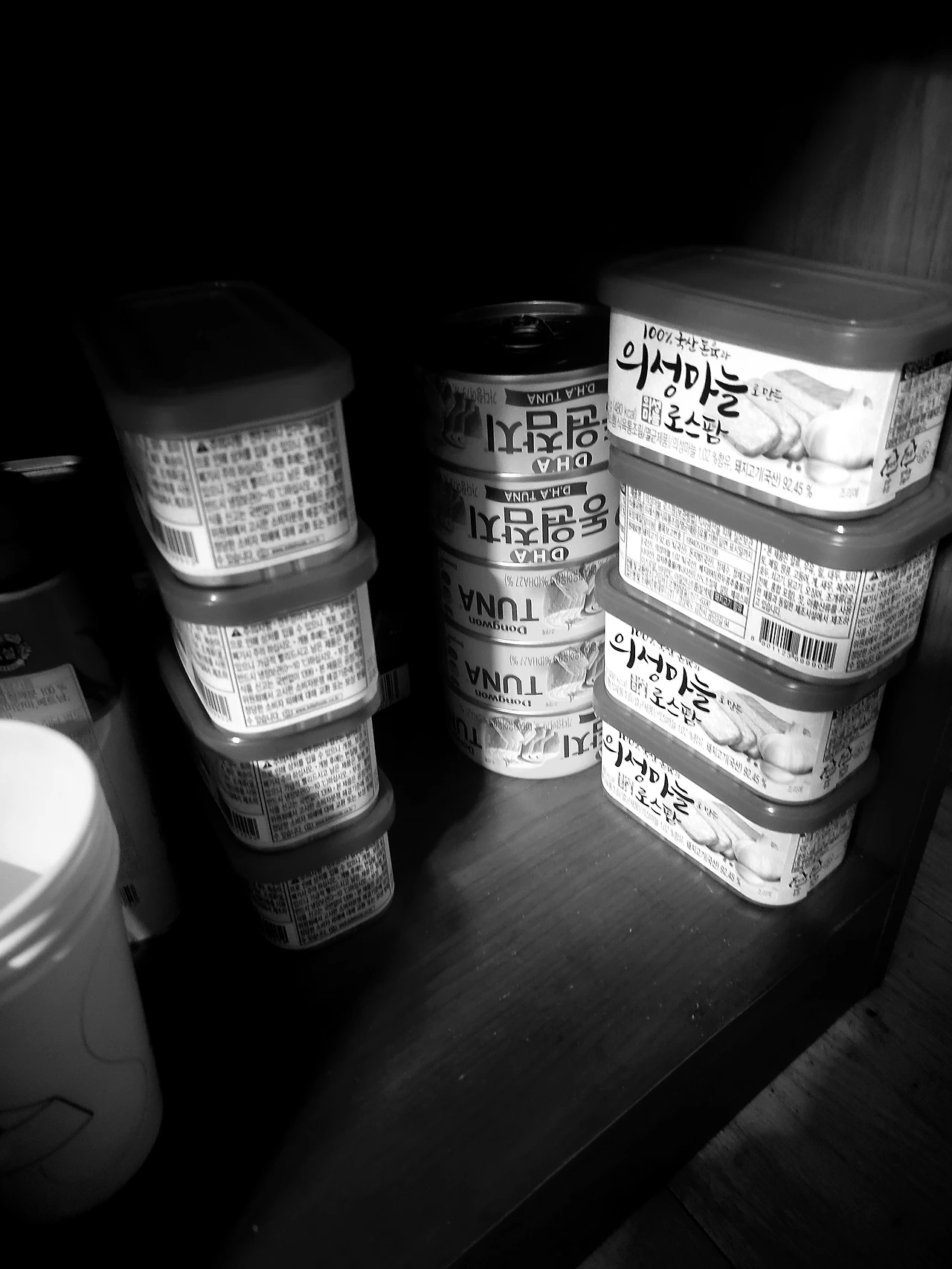 그때 참치캔이 내 시야에 들어오는 것과 동시에 의식을 사로잡았다. 왜 나는 지금 참치에 온 신경과 관심을 기울이는 걸까. 이성보다 본능이 앞설 만큼 배가 고프진 않았다. 그럼 왜? 나의 의문은 참치캔까지 집어들고나니 풀렸다. 캔 옆에 놓여져 있던 물건의 정체가 드러났기 때문이다.