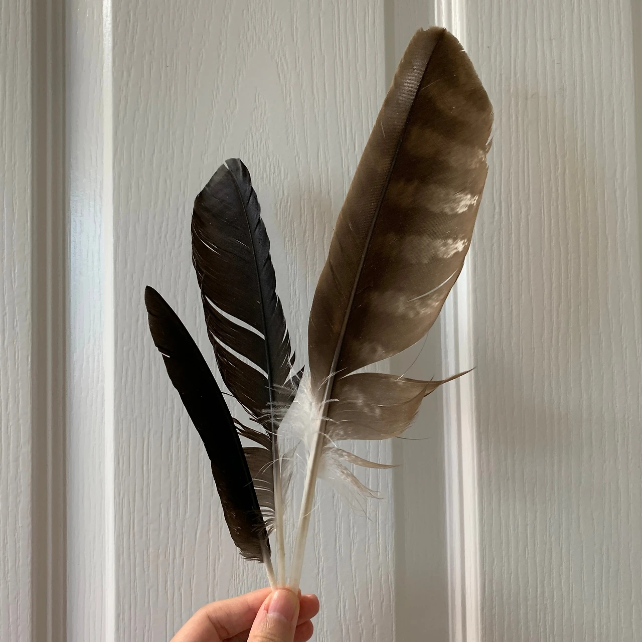 운동 갔다 돌아온 아빠 손엔 종종 깃털이 들려있었다. 그때마다 물었다. '이건 누구 깃털이야?' 각기 다른 새들의 이름을 들을 수 있었지만 제일 많았던 건 비둘기, 까마귀, 까치였다. 계속 듣고 보다 보니 나도 대충은 구분할 수 있게 되었다. 반짝거리는 광이 나면 까치, 까맣기만 하면 까마귀, 회색 빛깔이 돌면 비둘기. 하지만 계속 질문했다. 어디서 주웠고 누구 깃털인지. 항상 묻고 항상 대답해준다. 아빠와 나의 깃털 대화.