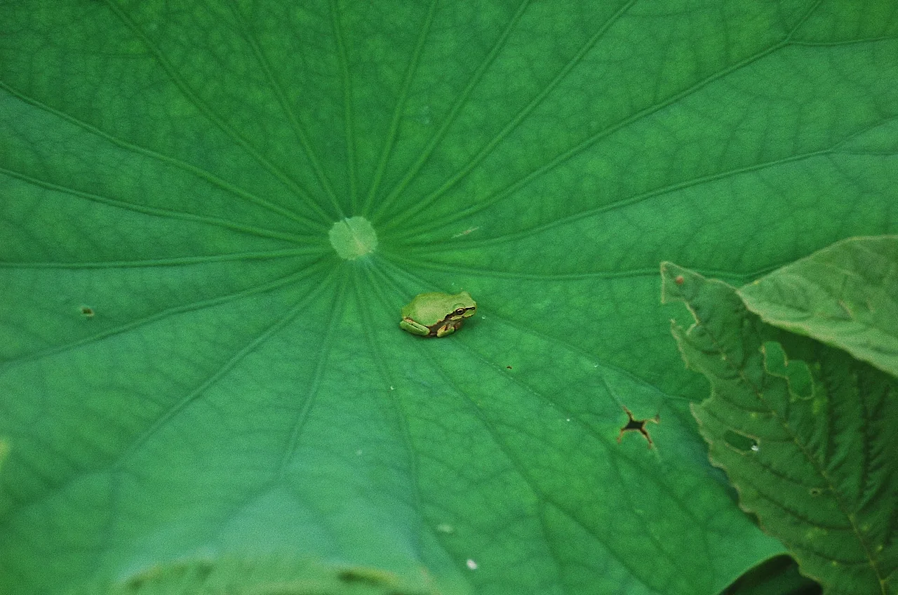 큰 잎에서 쉬고 있는 청개구리. 청개구리가 작은 것도 있지만 잎이 커서 더 작아 보인다. 식빵 굽는 자세로 휴식을 취하는 모습이 귀여워 사진으로 담았다. 언뜻 보면 보호색이라 눈에 띄지 않을 수 있지만 내겐 개구리 레이더망이 장착되어 있는 듯하다. 도시에선 볼 수 없는 청개구리. 외곽지역에 갈 일이 생기면 청개구리가 있을법한 장소를 찾아가곤 한다. 안 보면 보고 싶다. 특히 날이 흐리거나 비 오는 날이면 더더욱. 겨울엔 볼 수 없으니 볼 수 있을 때 자주 보고 영상과 사진으로 담아놔야 한다. 겨울의 나를 위해.