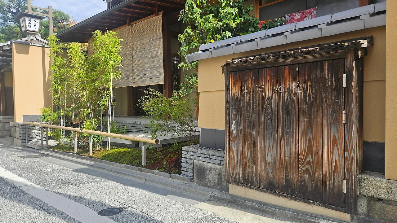 원칙은 명료하다. 경관을 해치지 않을 것. 시선을 어지럽히는 요소는 지우듯 감추거나, 주변과 한 몸이 되게 만든다. 교토의 미의식은 앞에 나서지 않는다. 드러내기보다 감추고, 보여주기보다 암시한다. 마치 시야를 피해 다니는 닌자(忍者)처럼, 존재를 감춘 채 역할만 정확히 수행한다. 가림 시설도 그냥 덮는 데서 끝나지 않는다. 대나무, 목재, 흙빛 패널 같은 자연 소재를 골라 거리와 집의 색과 질감에 맞춘다. 과시하지 않지만 충분히 말하는, 교토가 풍경을 지키는 방식이다.